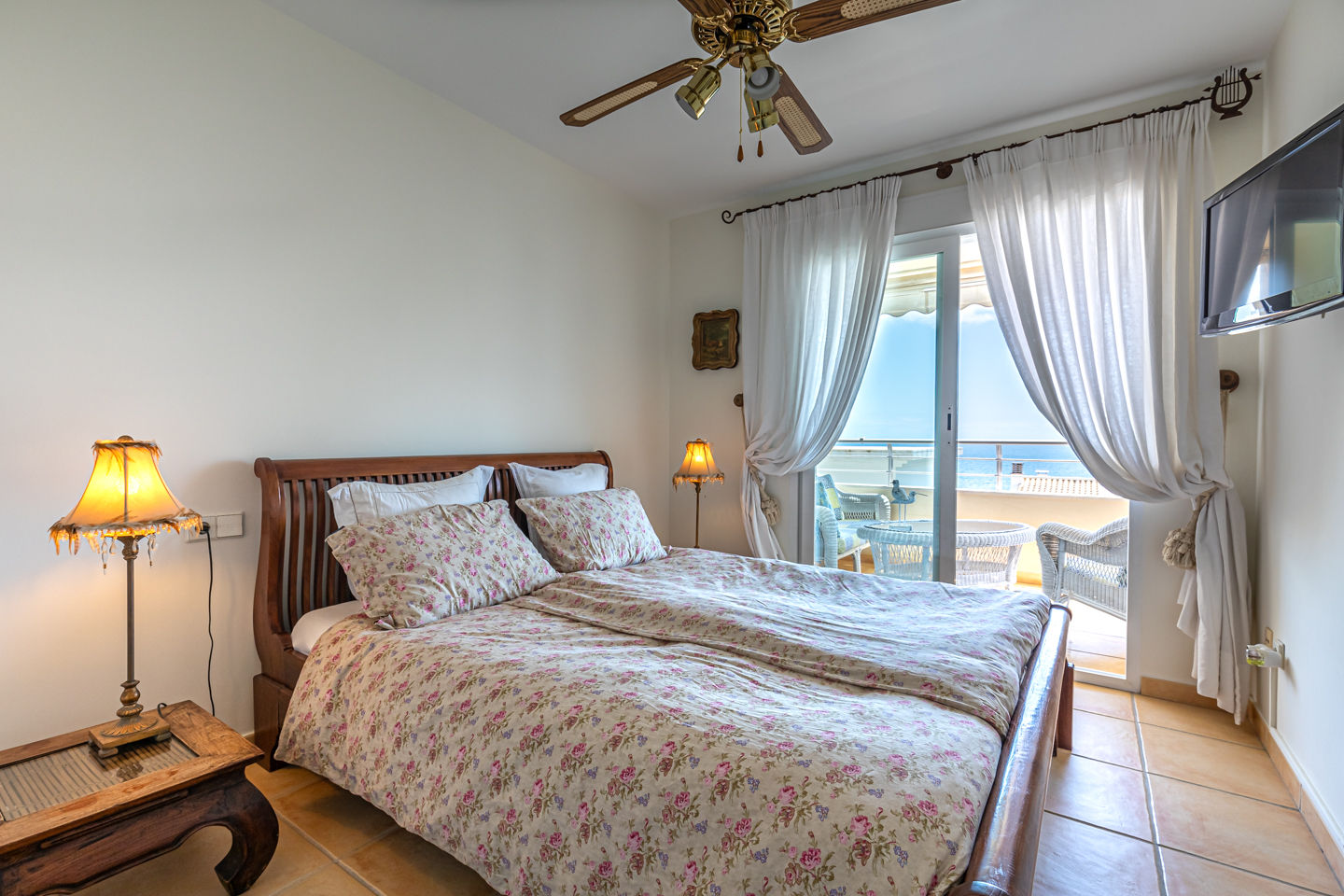 The apartment has 3 bedrooms and 2 bathrooms. The accommodation offers privacy, a lawned communal garden and beautiful views of the bay, the sea, the pool and the garden. Its comfort and the proximity to the beach, shopping areas, sports activities, entertainment facilities and nightlife make this a fine apartment to spend your holidays in Spain with family or friends.
