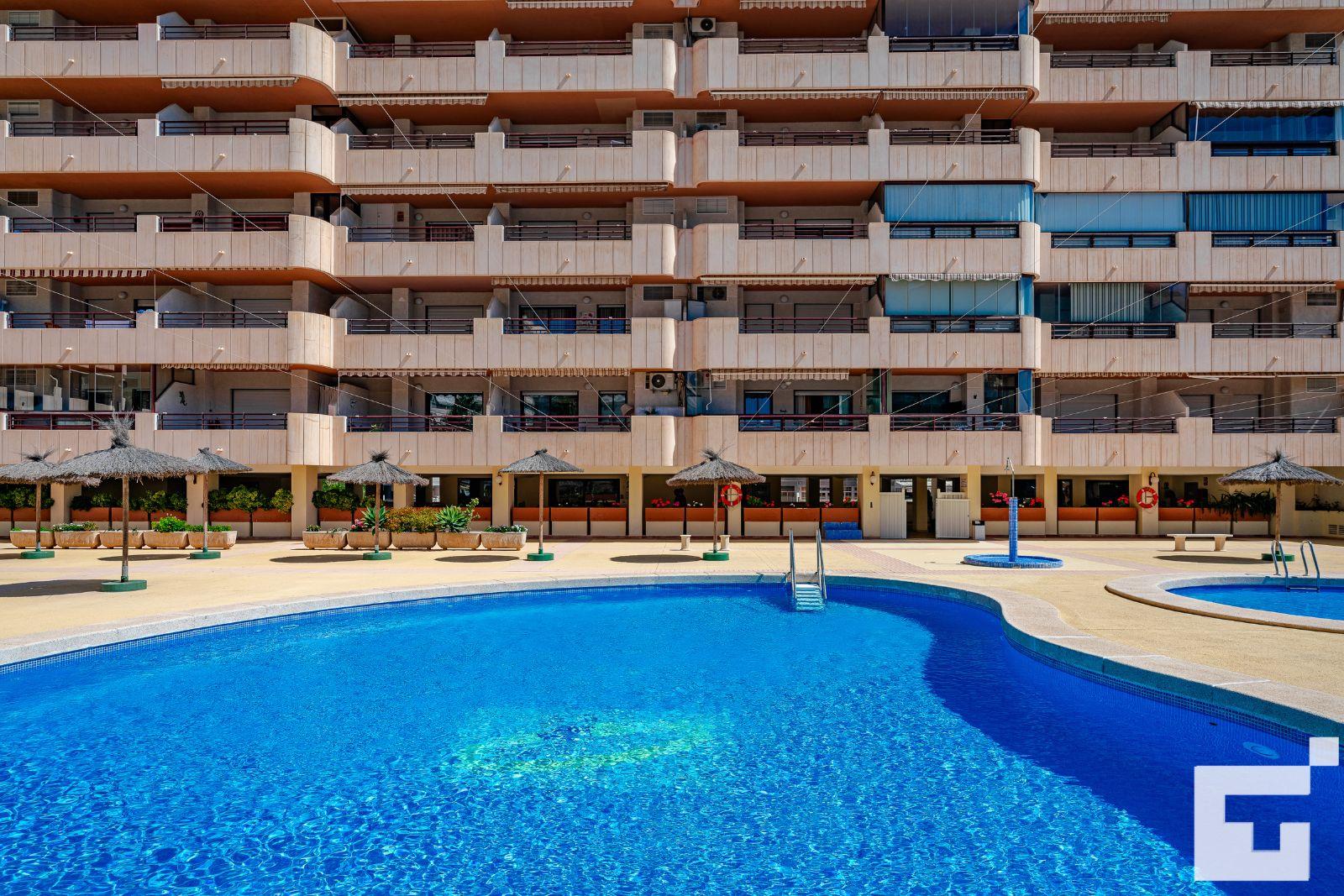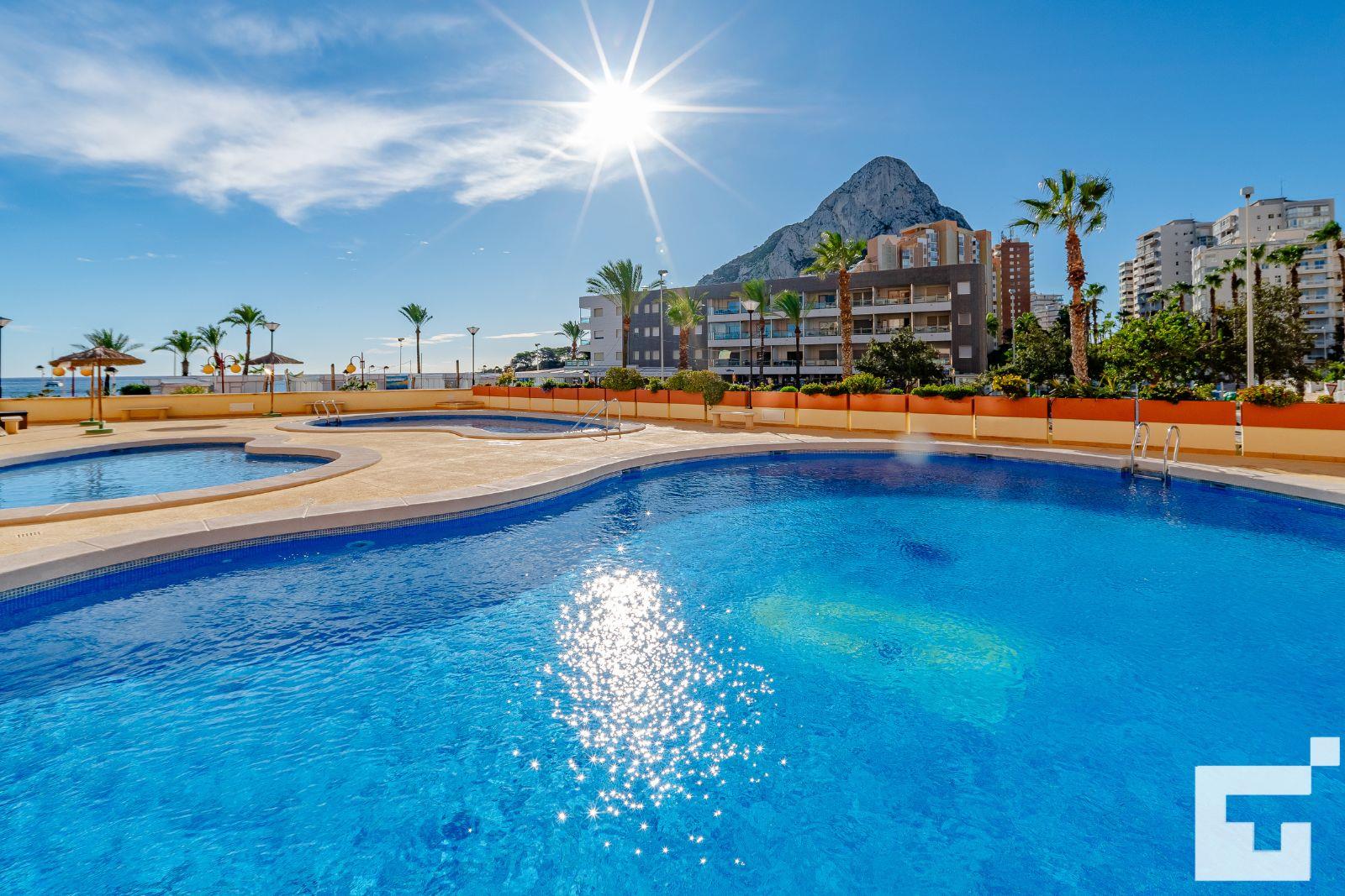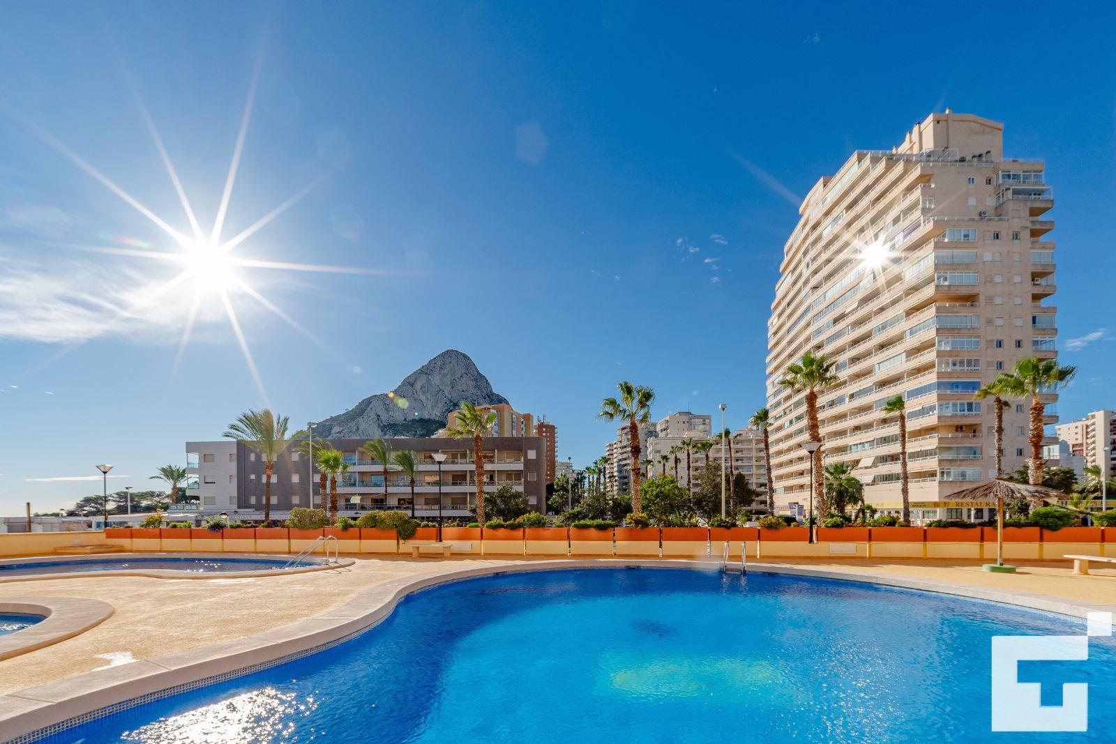 Apartment with communal pool in Calpe, Costa Blanca, Spain for 4 persons. The apartment is situated close to restaurants and bars, shops and supermarkets, and is 25 m from La Fossa / Levante beach.