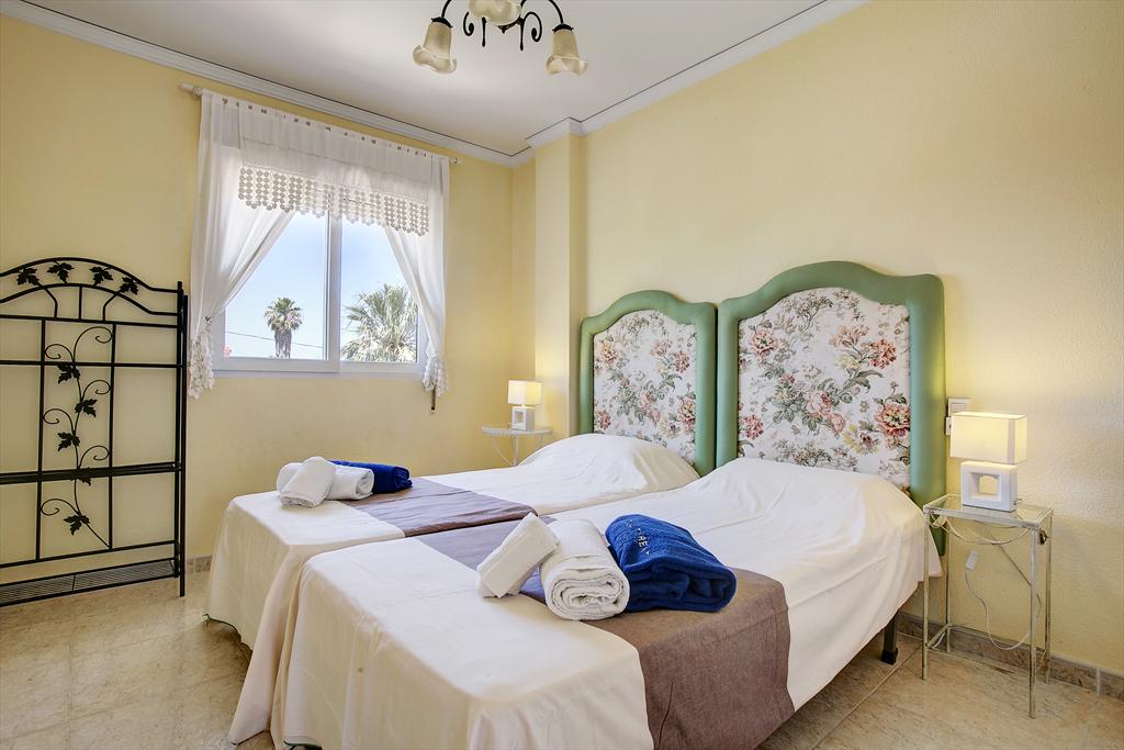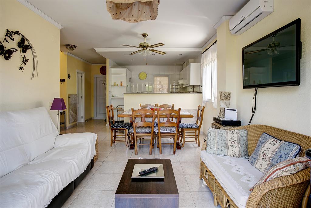 The holiday home has 3 bedrooms and 2 bathrooms, spread over 2 levels. The accommodation offers privacy, a beautiful lawned garden and a communal garden with trees. Its comfort and the proximity to the beach, shopping areas, sports activities, entertainment facilities, nightlife, sights, and culture make this a fine holiday home to spend your holidays in Spain with family or friends.