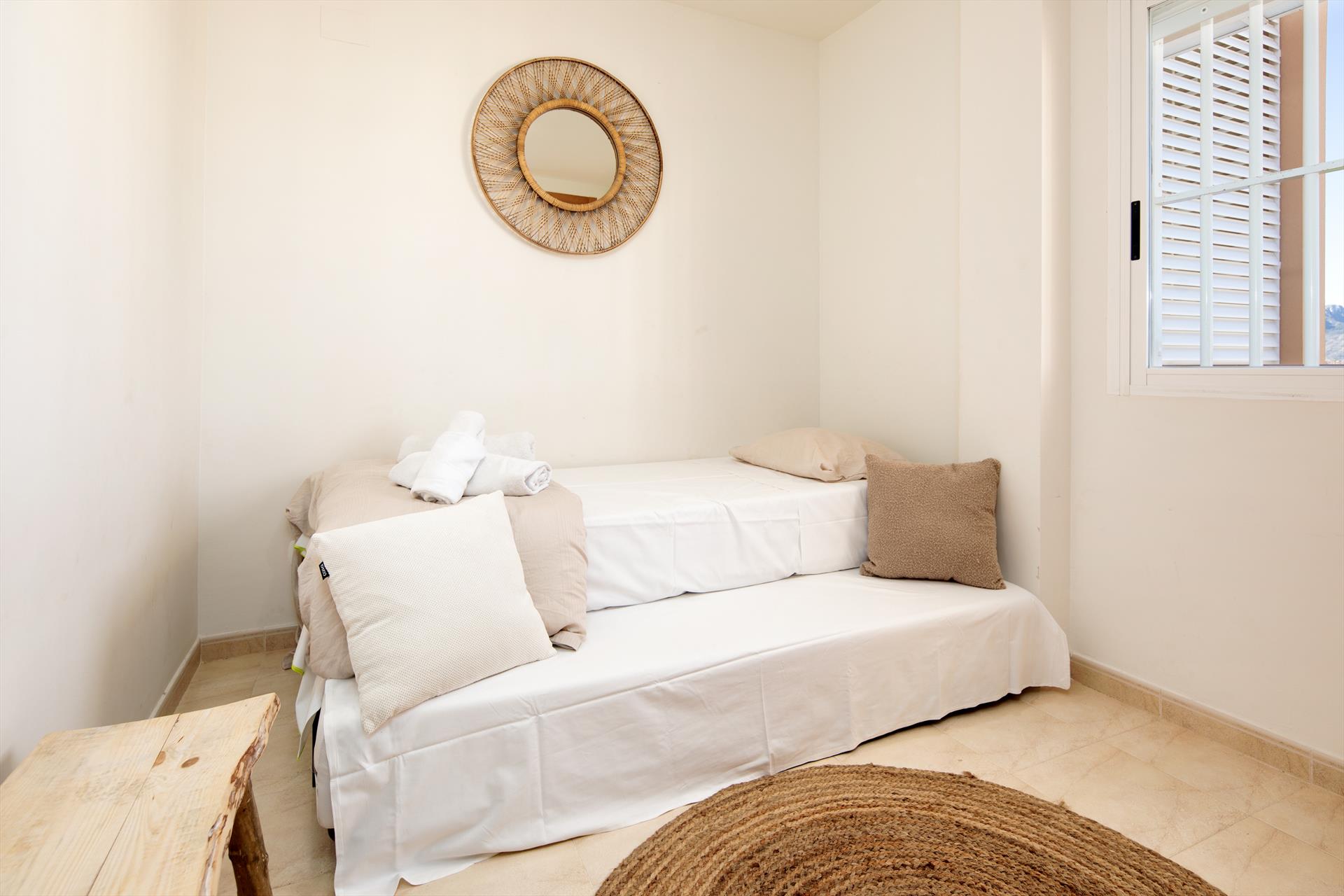 The house has 3 bedrooms and 1 bathroom. The accommodation offers a lawned garden, a communal garden with gravel, and wonderful views of the mountains. Its comfort and the proximity to the beach, shopping, sports activities, nightlife, sights, and culture make this a fine penthouse to spend your holidays in Spain with family or friends.