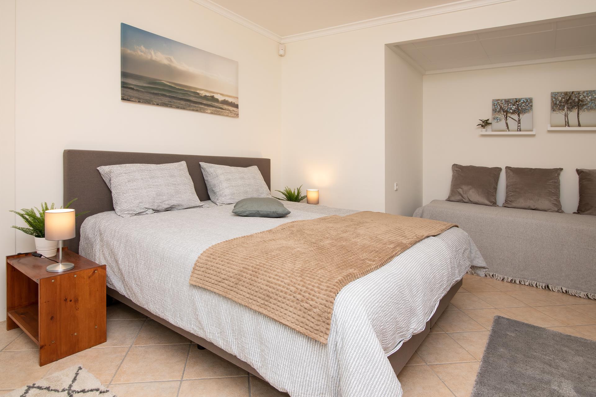 • bedroom with air conditioning, king size bed (measuring 200 by 180cm) and en-suite bathroom
