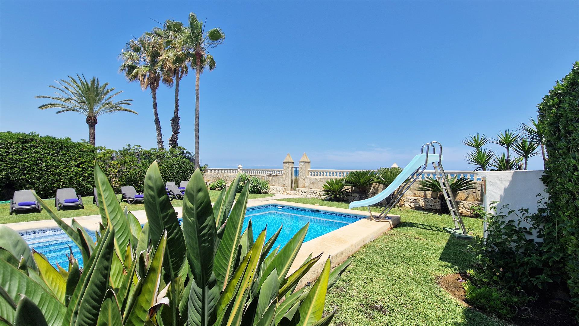 The villa has 6 bedrooms, 3 bathrooms and 1 guest toilet, spread over 2 levels. The accommodation offers privacy, a wonderful lawned garden with gravel and trees, a wonderful pool, wonderful views of the sea and the mountains, and beautiful views of the beach. Its comfort and the proximity to the beach, places to shop, sports activities and places to go out make this a fine villa to spend your holidays in Spain with family or friends.