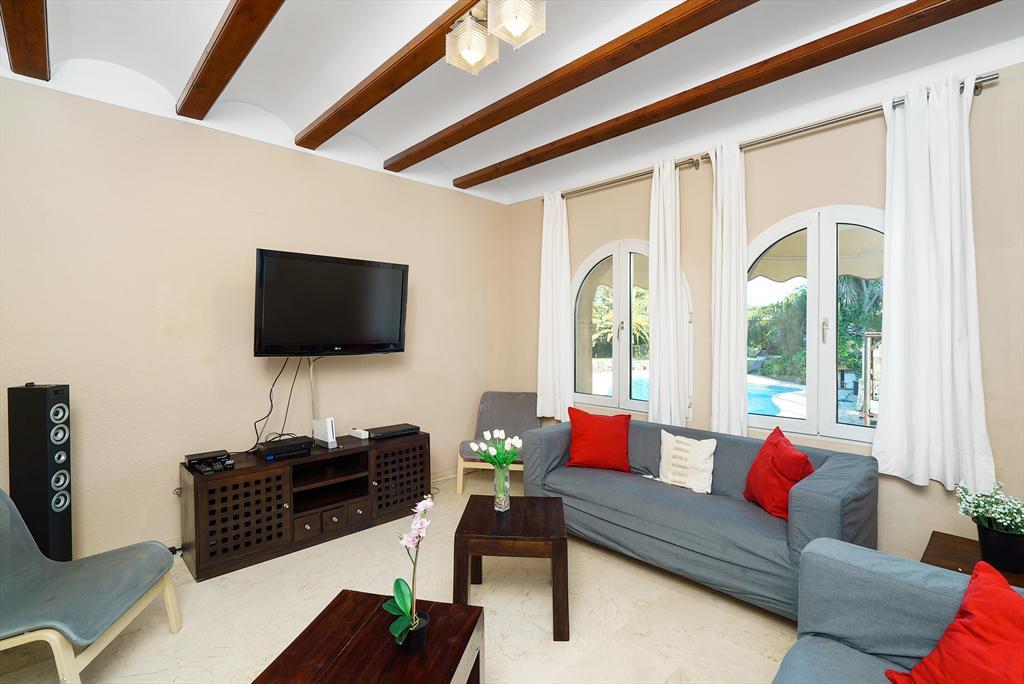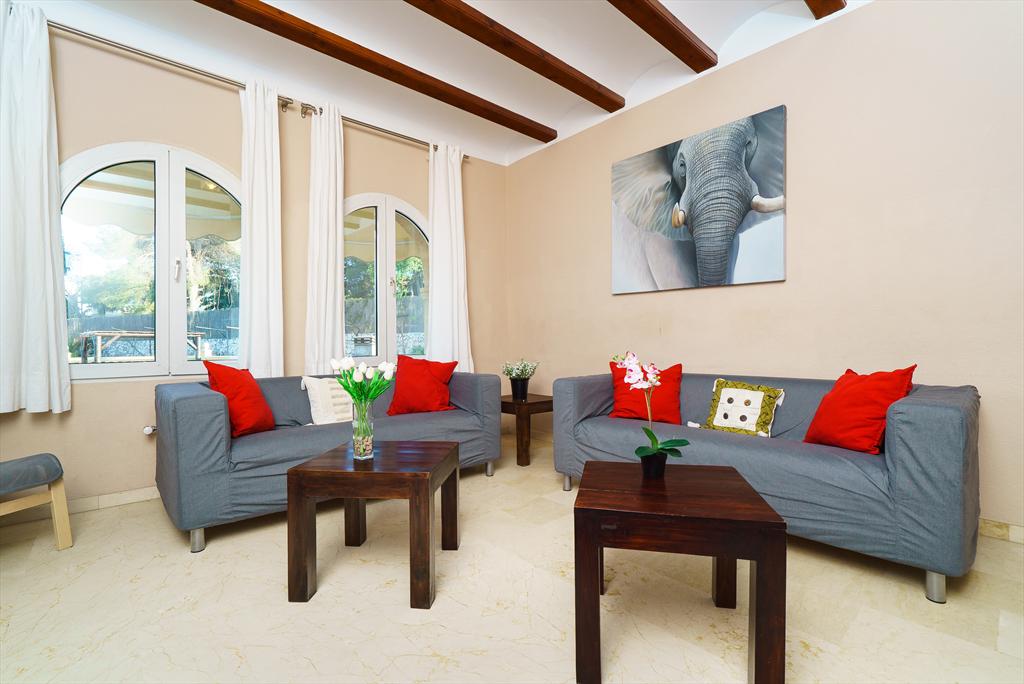 Large and comfortable villa with private pool in Jávea, Costa Blanca, Spain for 12 people. The house is situated in a residential beach area, close to restaurants, bars, and supermarkets, at 1 km from El Arenal, Jávea beach, and at 1 km from the Mediterranean Sea, Jávea.