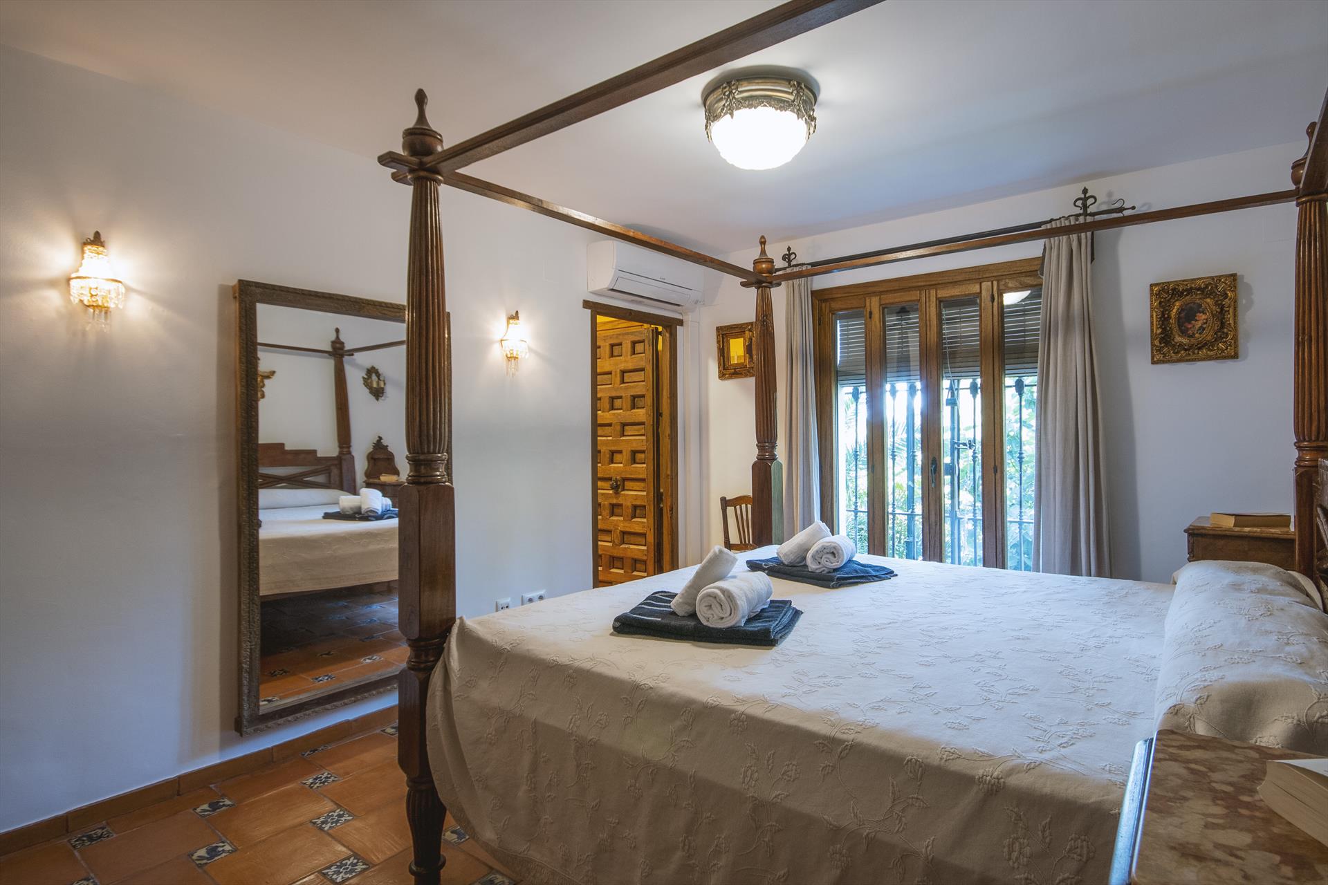 • air-conditioned bedroom with double bed (measuring 190 by 135cm) and bathroom en-suite