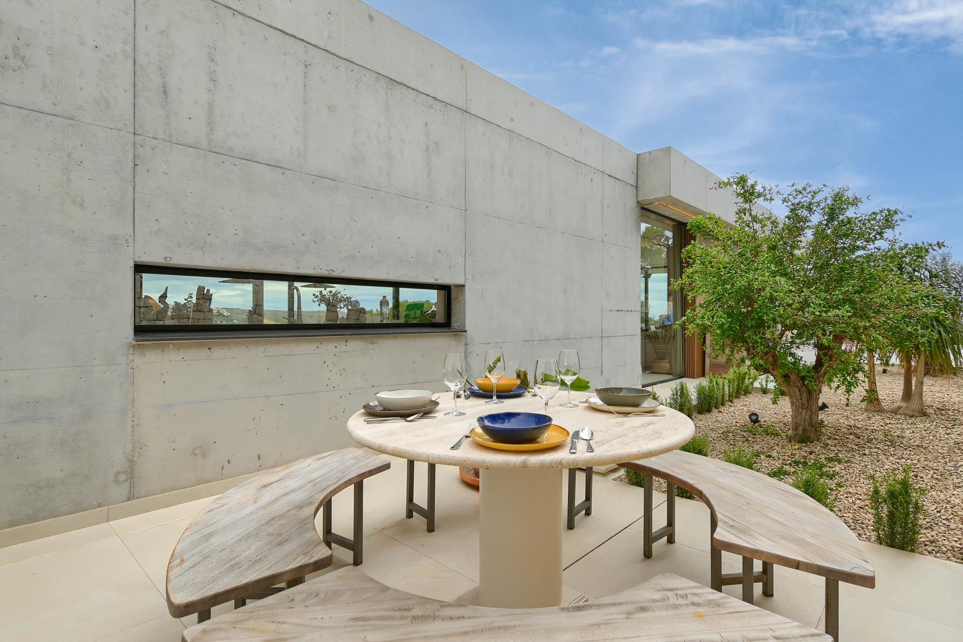 Modern and luxury villa with private pool in Javea, Costa Blanca, Spain for 8 persons. The house has views around the Mongo, the port of Javea and L'Arenal.