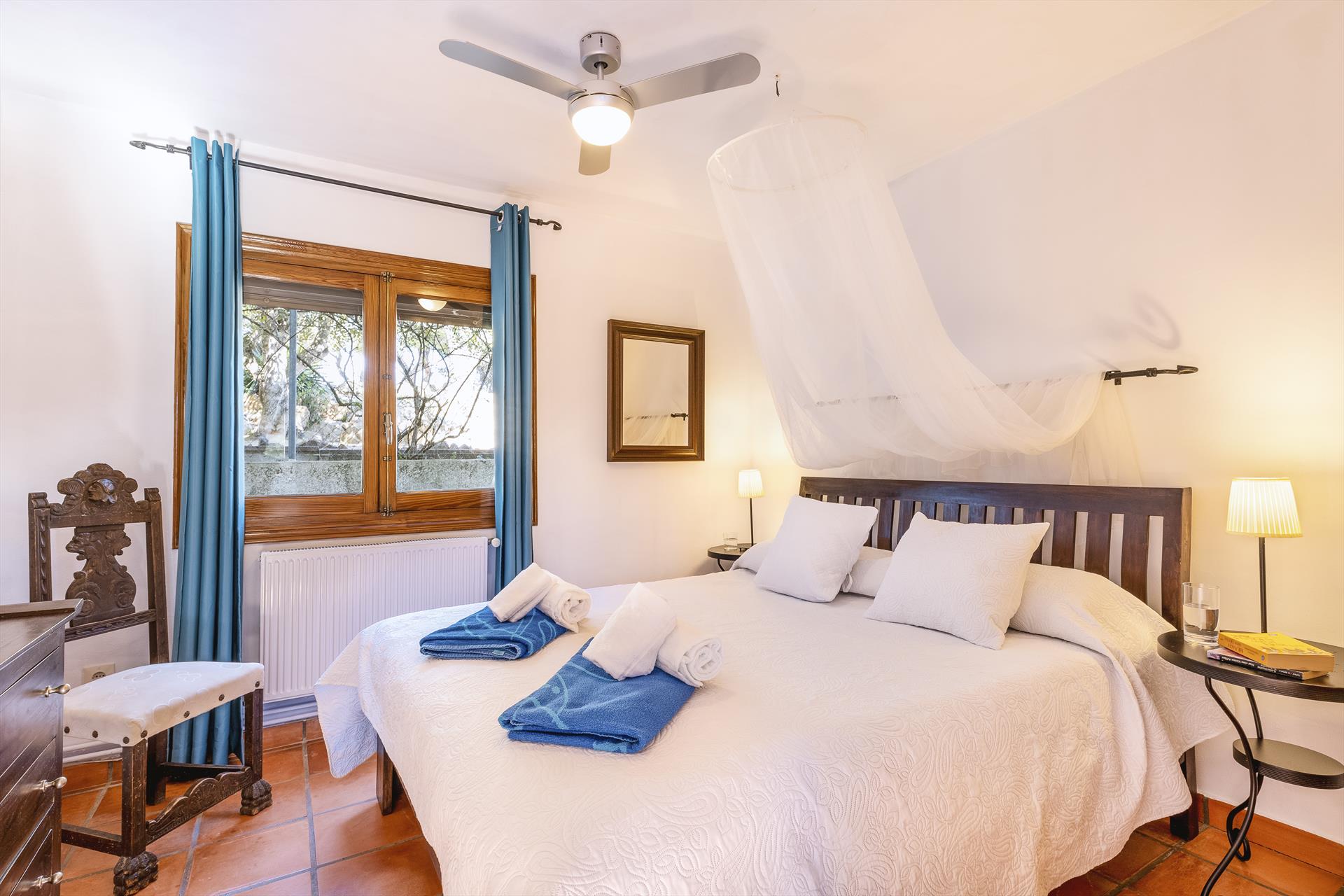 • bedroom with double bed and fan