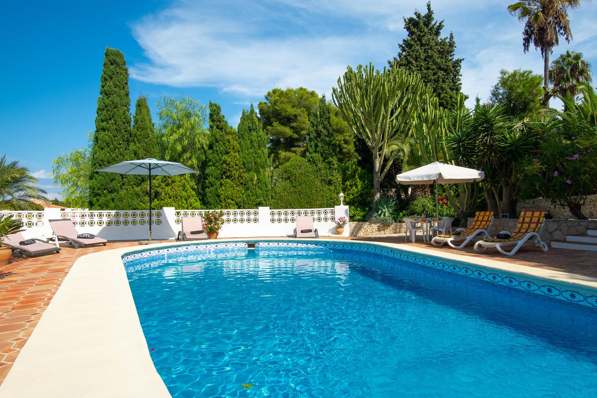 Beautiful and comfortable villa with private pool in Javea, on the Costa Blanca, Spain for 6 persons. The villa is situated in a residential beach area, close to restaurants and bars and at 3 km from El Arenal, Javea beach.