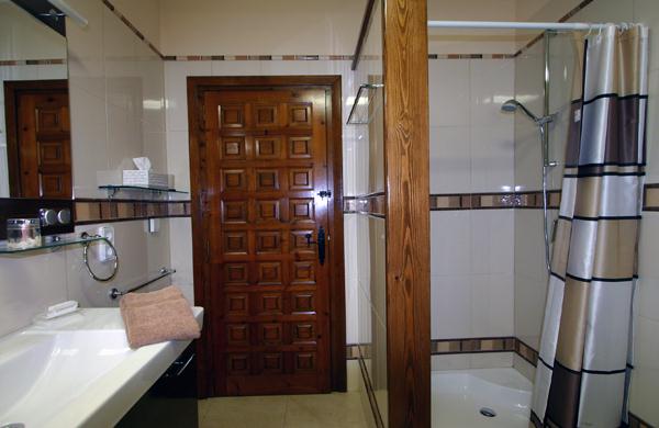 • bathroom with single washbasin, shower and toilet