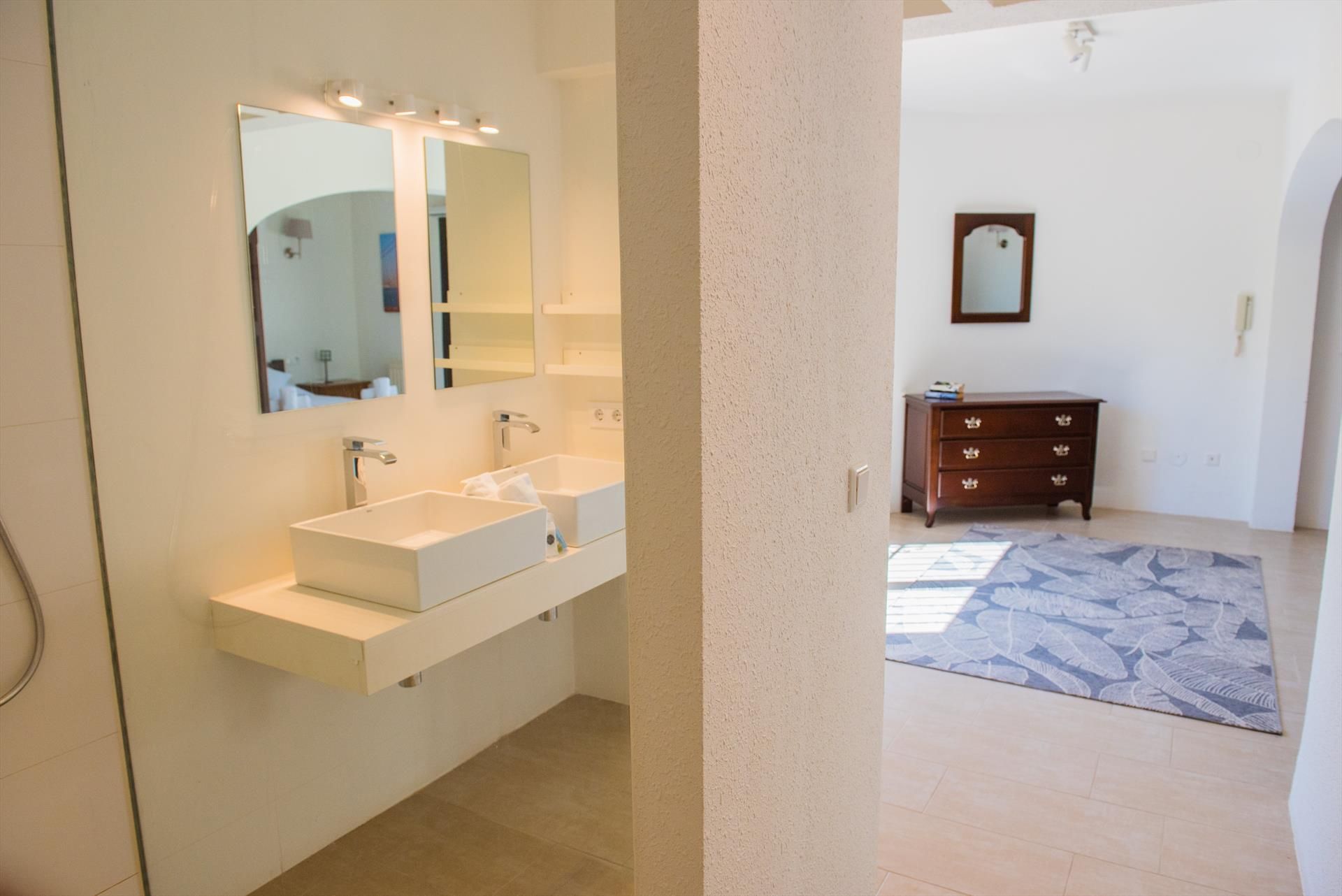 • en-suite bathroom with double washbasin and shower