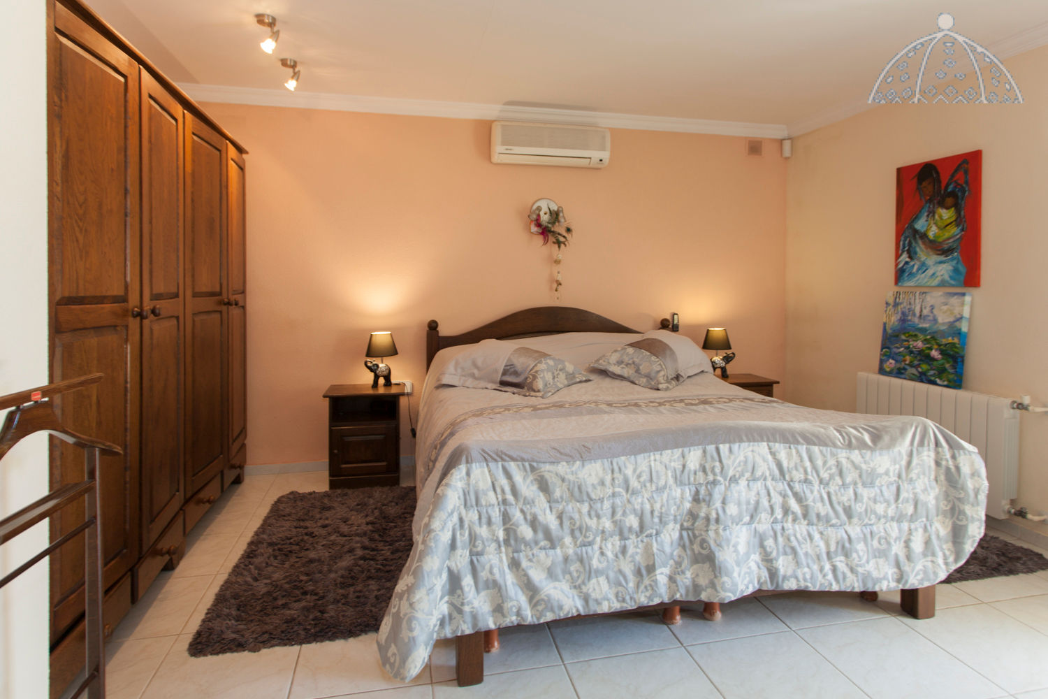• chambre avec climatisation, lit double et salle de bain attenante
