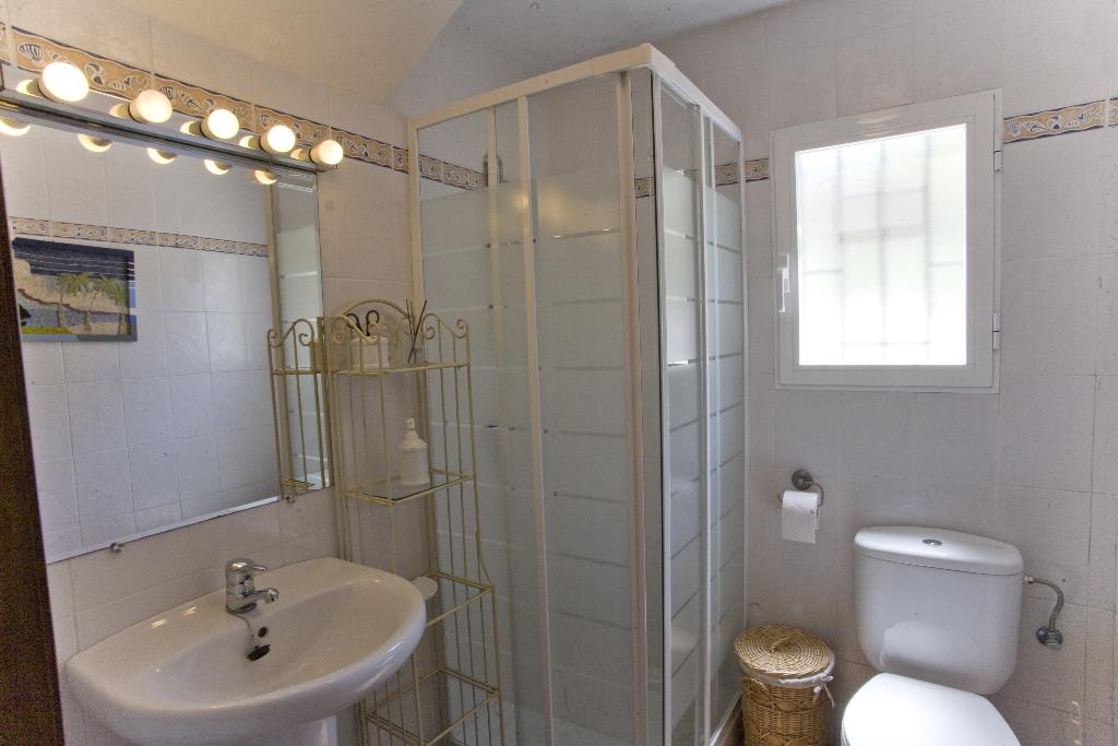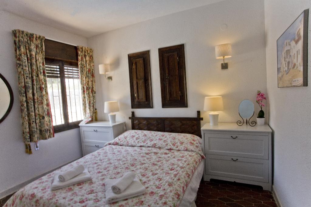 La villa dispose de 3 chambres et de 2 salles de bains, réparties sur 2 niveaux. L'hébergement offre intimité, jardin avec gravier et arbres, ainsi qu'une belle piscine. Son confort et sa proximité avec la plage, les zones commerçantes, les activités sportives et les lieux de divertissement en font une villa idéale pour passer vos vacances en Espagne en famille ou entre amis.