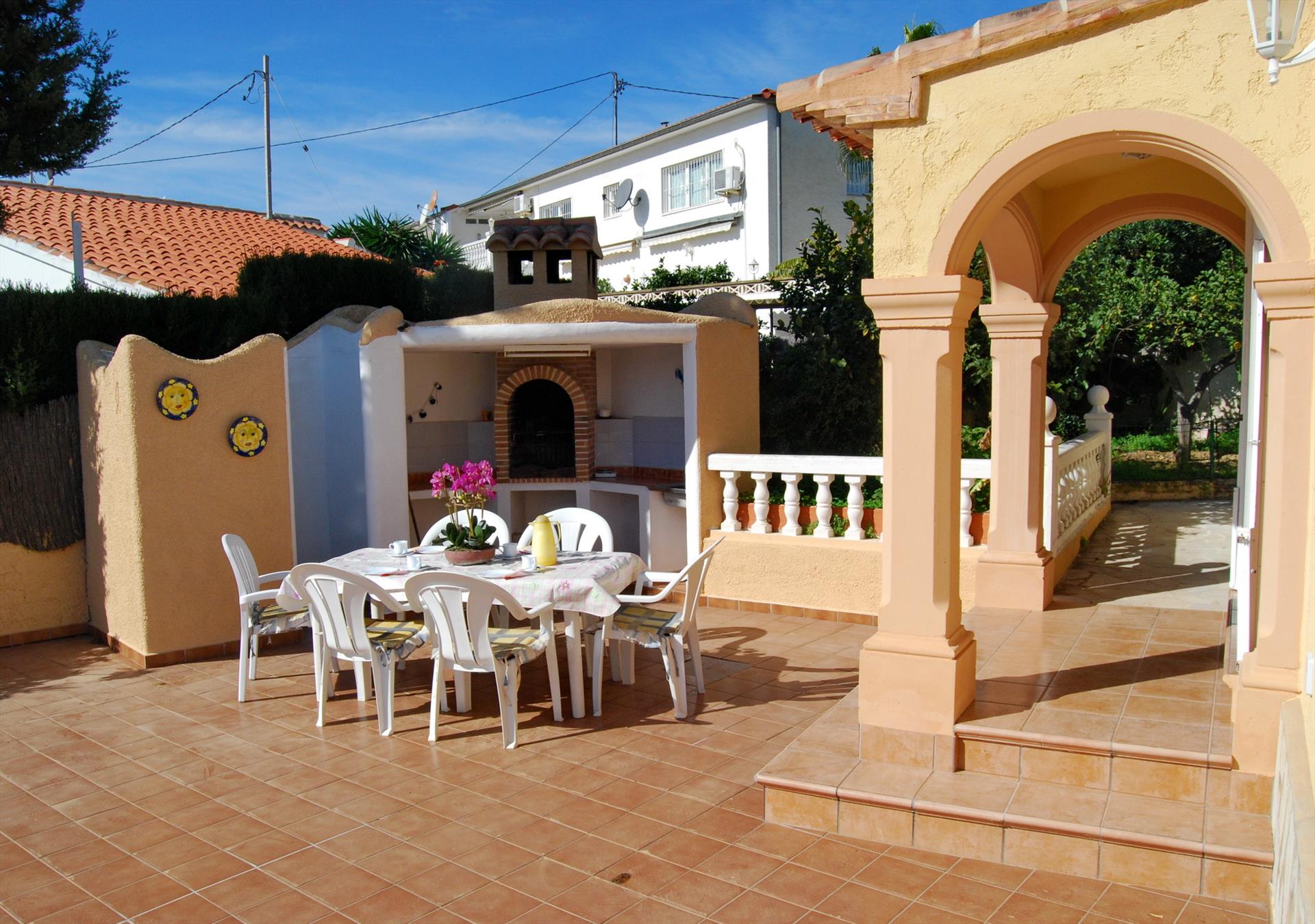 La villa dispose de 3 chambres et de 2 salles de bains, réparties sur 2 niveaux. L'hébergement offre intimité, un jardin avec des arbres et une belle piscine. Son confort et la proximité de la plage, des zones commerçantes, des activités sportives et des lieux de sorties font de cette villa un choix idéal pour passer vos vacances en Espagne en famille ou entre amis, et même avec vos animaux de compagnie.