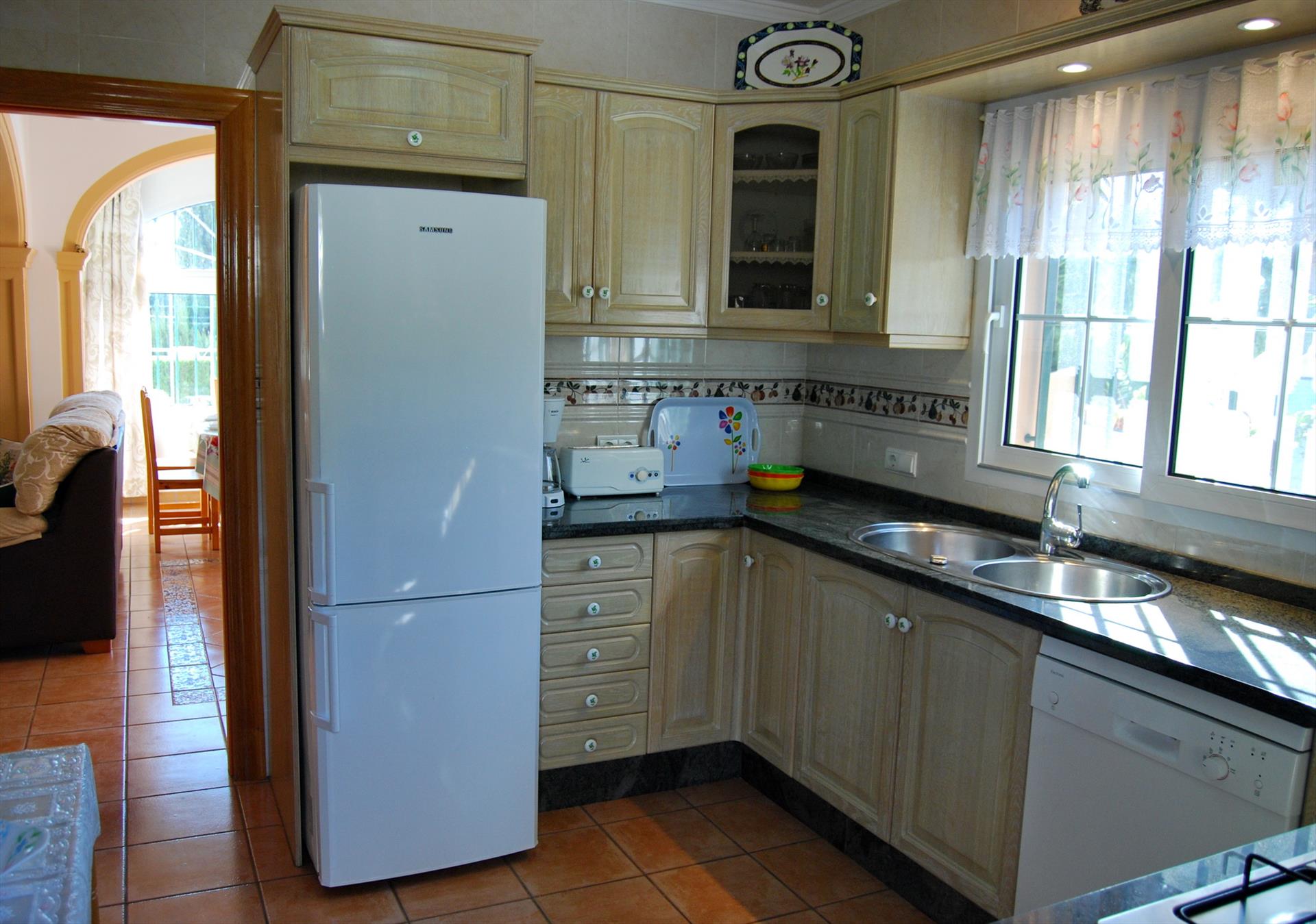 • cuisine équipée de plaques de cuisson au gaz, four électrique, micro-ondes, lave-vaisselle, réfrigérateur-congélateur, machine à café, bouilloire électrique et grille-pain