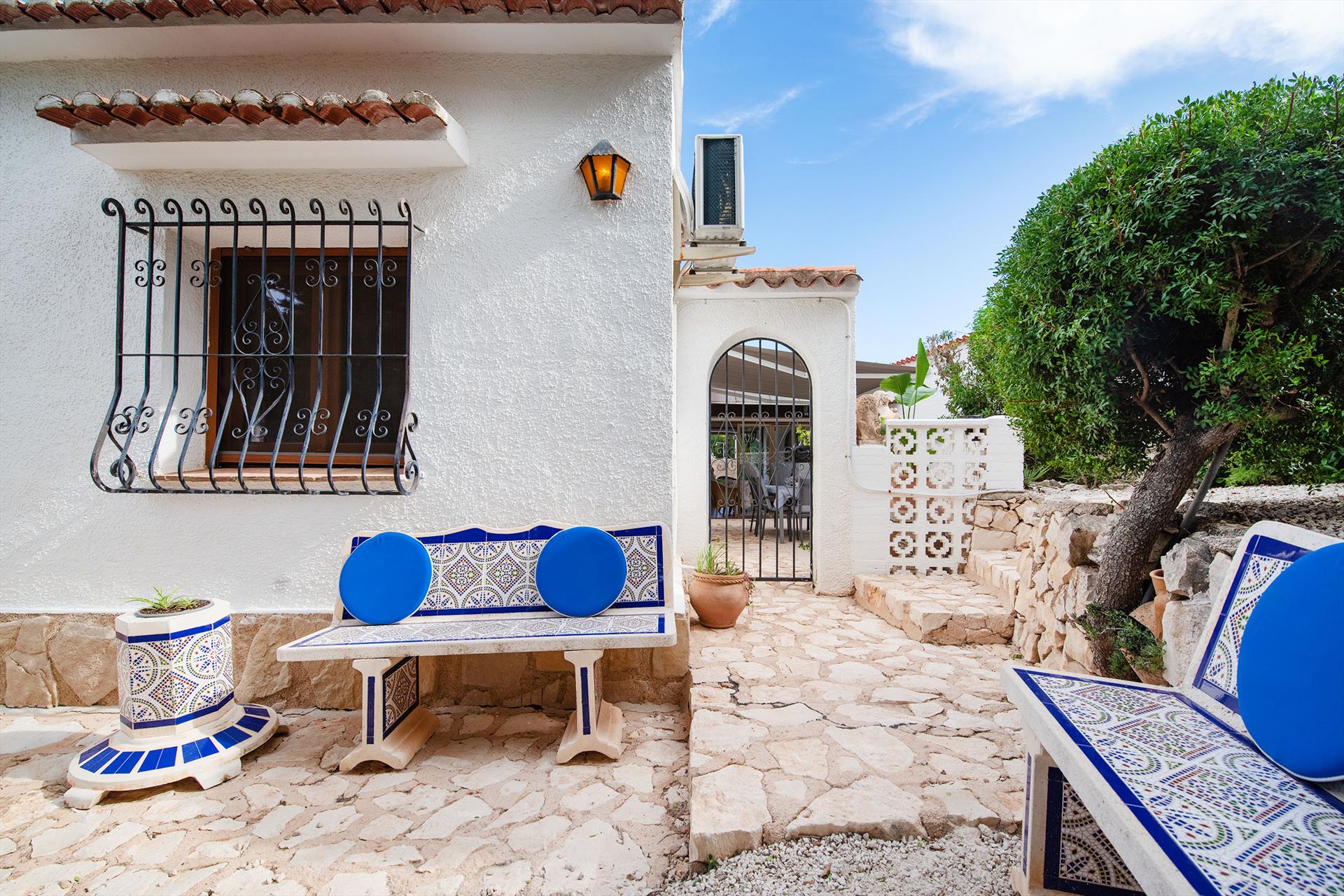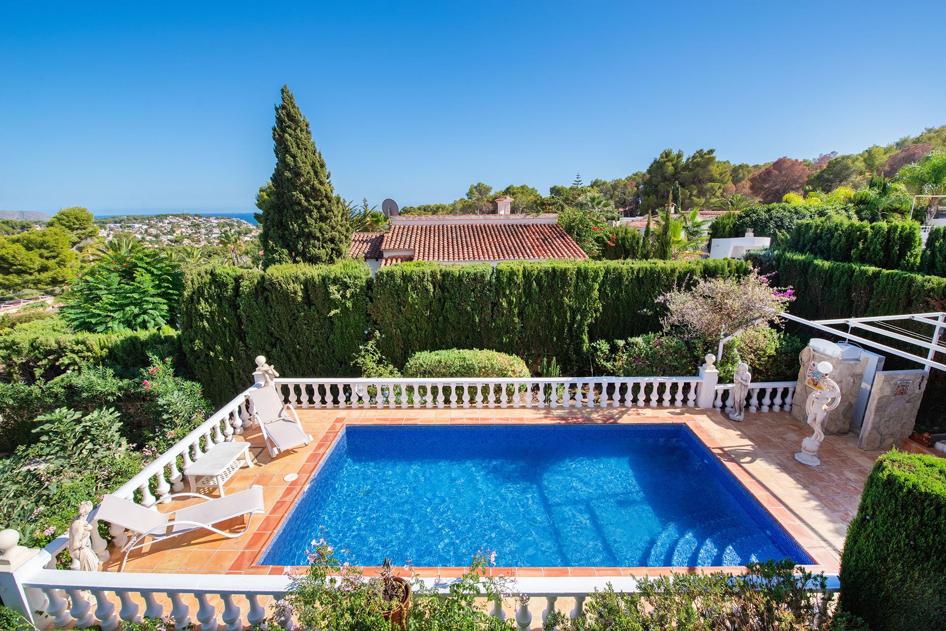 Villa classique et romantique à Benissa, Costa Blanca, Espagne, avec piscine privée pour 4 personnes. La maison est située dans un quartier résidentiel côtier et vallonné, à 2 km de la plage de Cala La Llobella et à 5 km de Calpe.