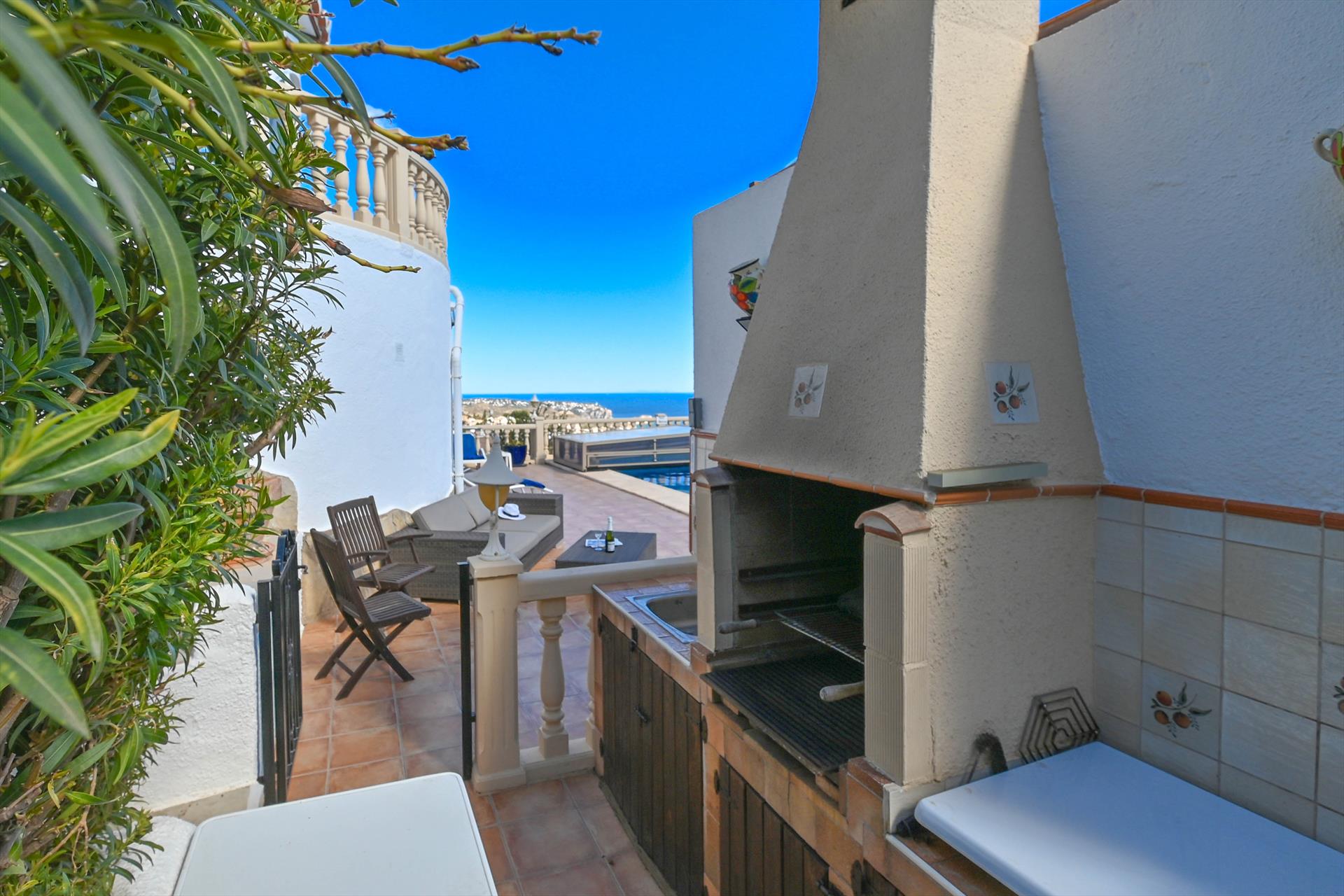 Magnifique et charmante villa avec piscine privée à Benitachell, Costa Blanca, Espagne, pour 6 personnes. La maison est située dans un quartier résidentiel proche de la plage, à 3 km de la plage de Cala Moraig et à 3 km du village de Benitachell.