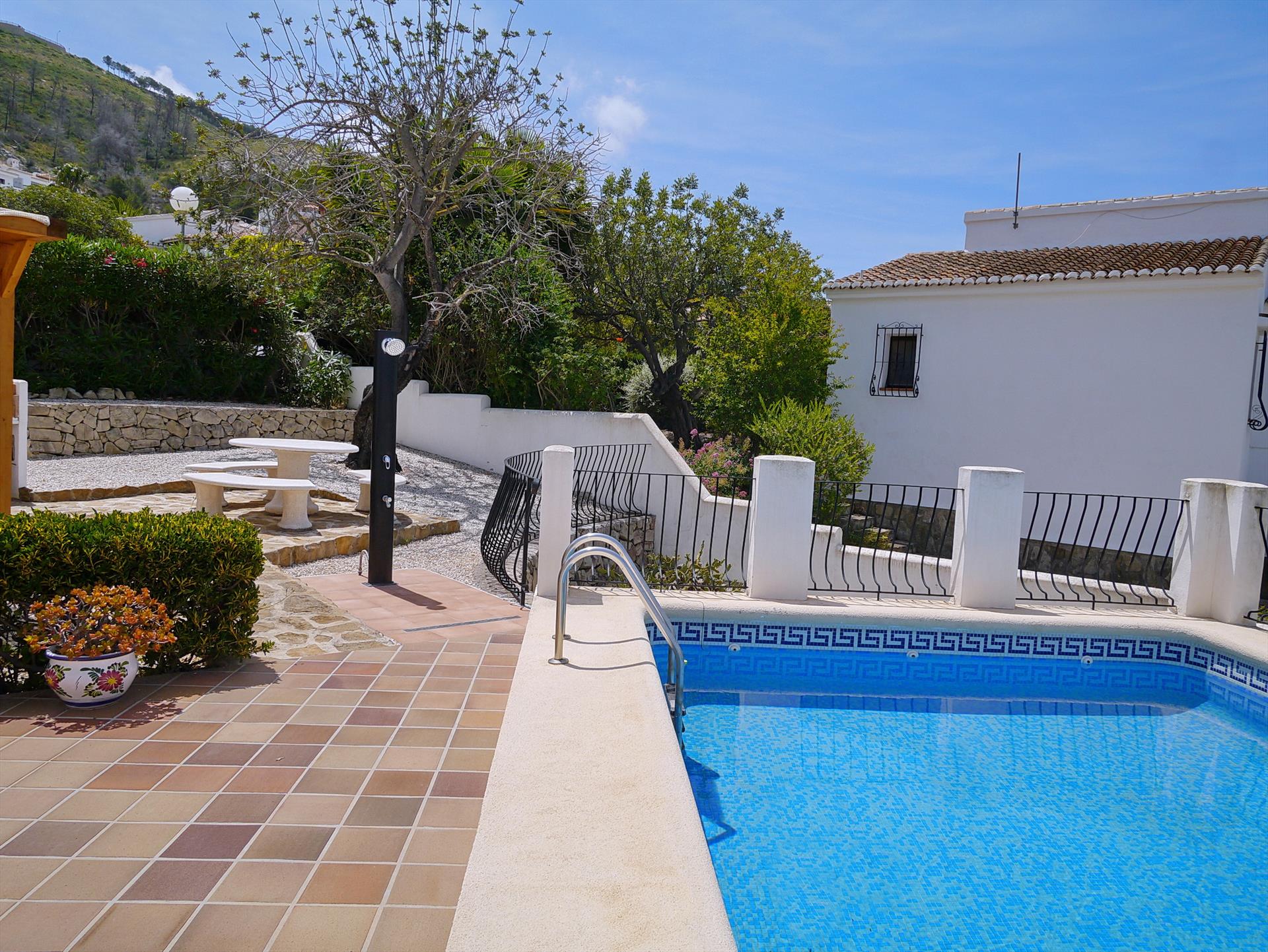 La maison dispose de 2 chambres et 2 salles de bains. L'hébergement offre un jardin avec gravier et arbres, une belle piscine, ainsi qu'une vue sur la vallée et les montagnes. Son confort et la proximité des commerces, des activités sportives et des lieux de sortie en font une villa idéale pour passer vos vacances en Espagne en famille ou entre amis.