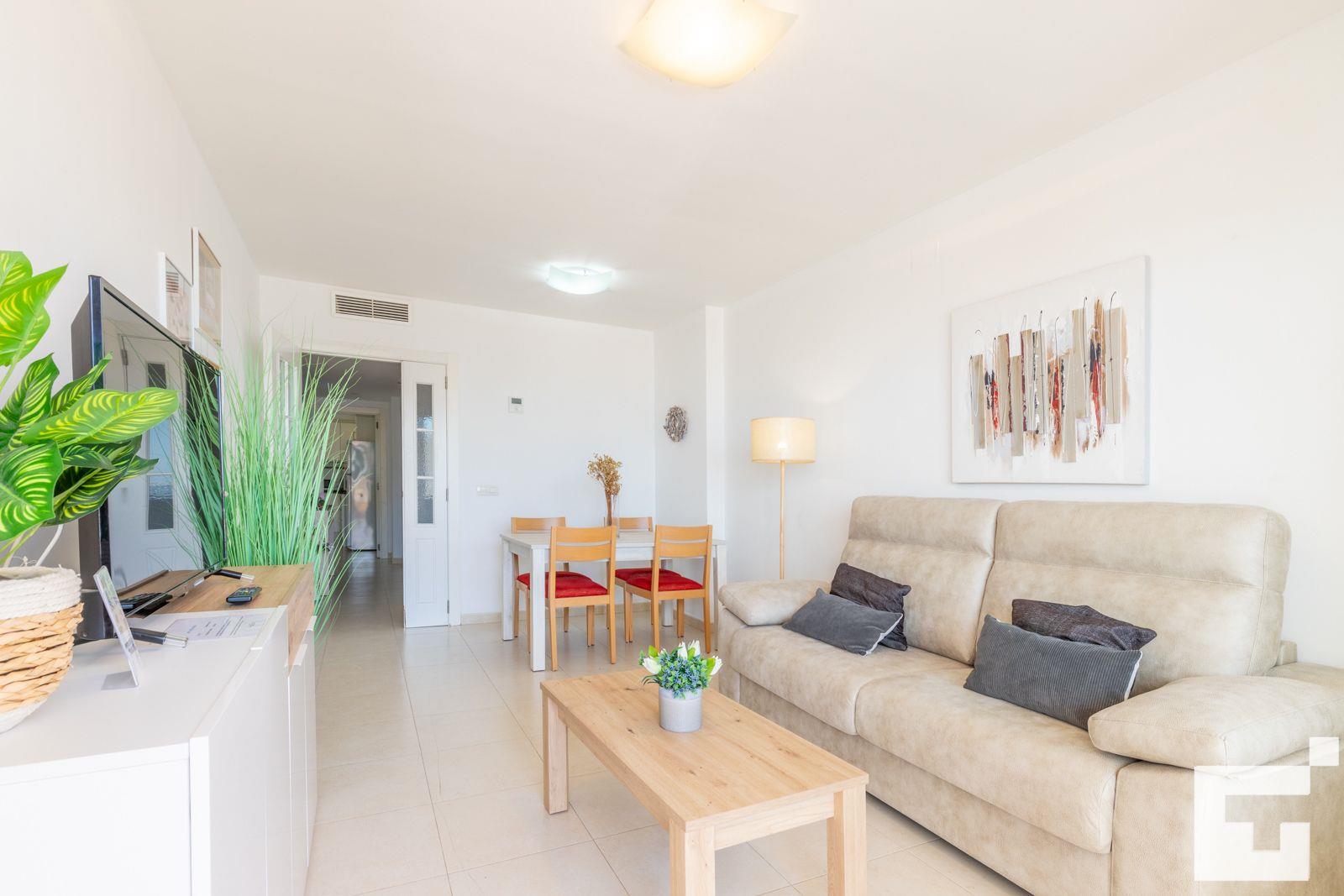 L'appartement dispose de 2 chambres et 2 salles de bains. L'hébergement offre intimité, un jardin commun avec pelouse et arbres, de magnifiques vues sur la baie, la plage et la mer, ainsi que de belles vues sur la piscine et le jardin. Son confort et la proximité de la plage, des magasins et des lieux de sortie font de cet appartement un excellent choix pour passer vos vacances en Espagne en famille ou entre amis.