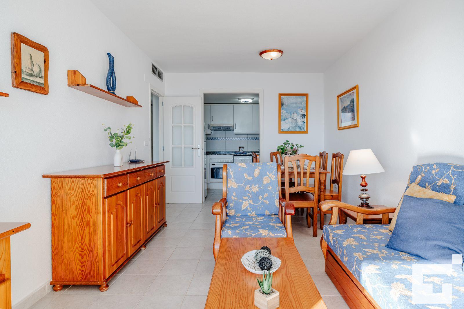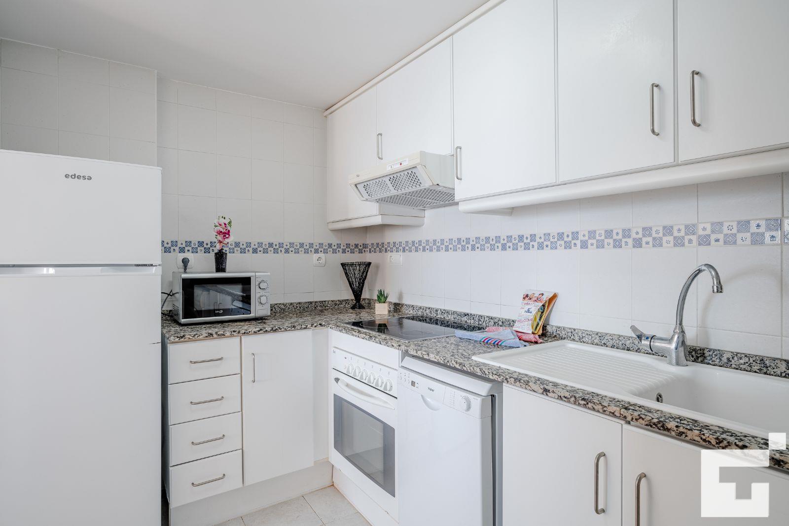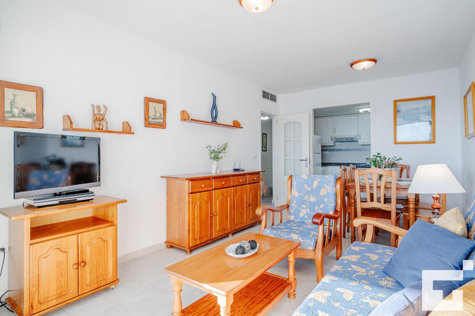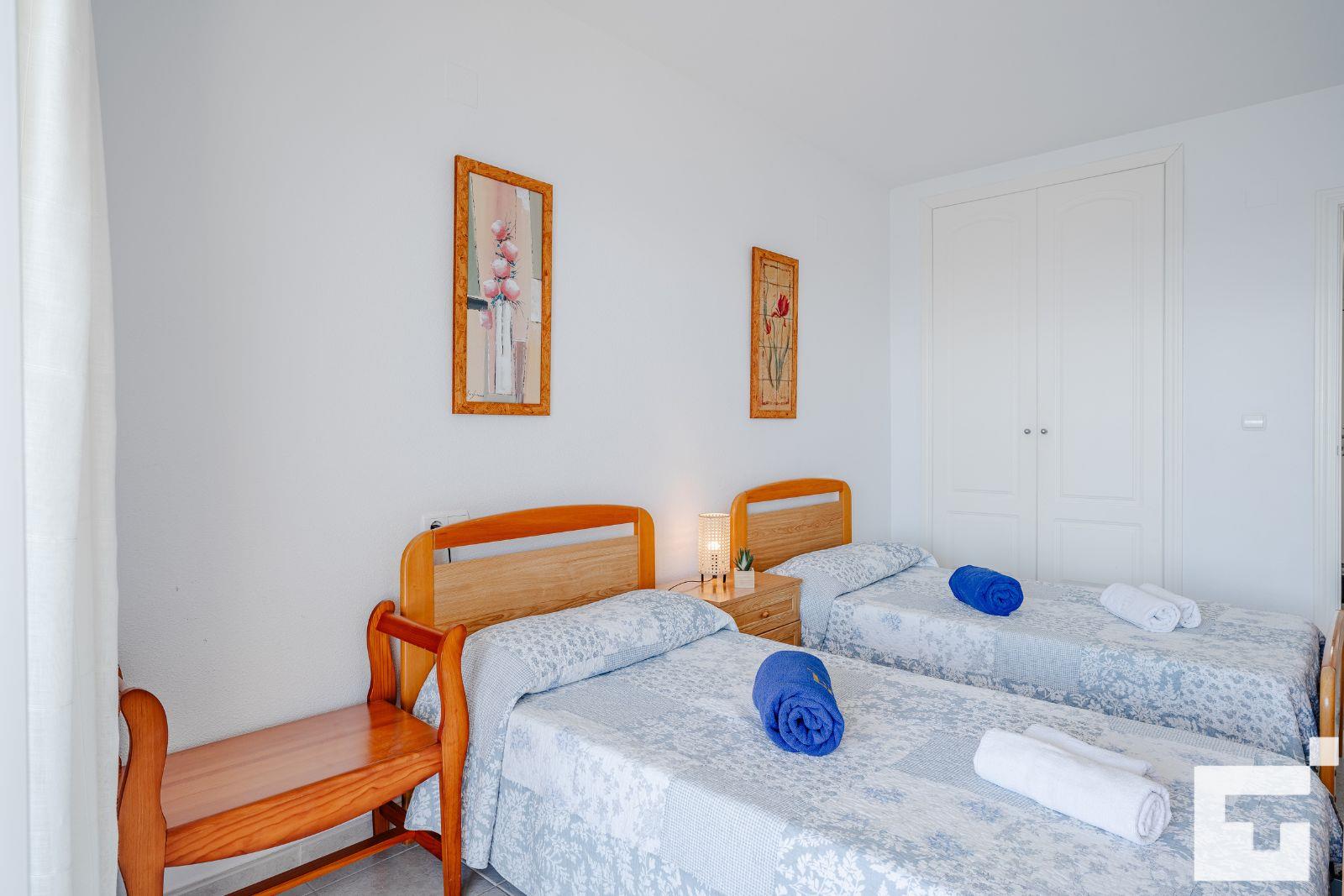 L'appartement comprend 1 chambre et 1 salle de bain. Le logement offre intimité, un beau jardin gazonné avec des arbres, un jardin commun gazonné avec des arbres, de merveilleuses vues sur la plage et la mer, ainsi que de belles vues sur les montagnes. La proximité de la plage, des zones commerçantes et des lieux de divertissement fait de cet appartement un endroit idéal pour passer vos vacances en Espagne en famille ou entre amis.