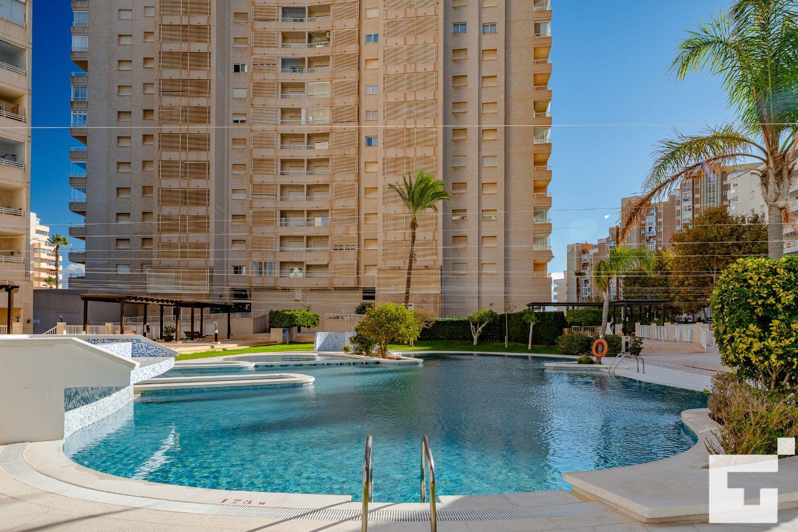 Appartement avec piscine commune à Calpe, Costa Blanca, Espagne, pour 4 personnes. L'appartement est situé à proximité de restaurants et bars, de commerces et supermarchés, et à 25 m de la plage de La Fossa / Levante.