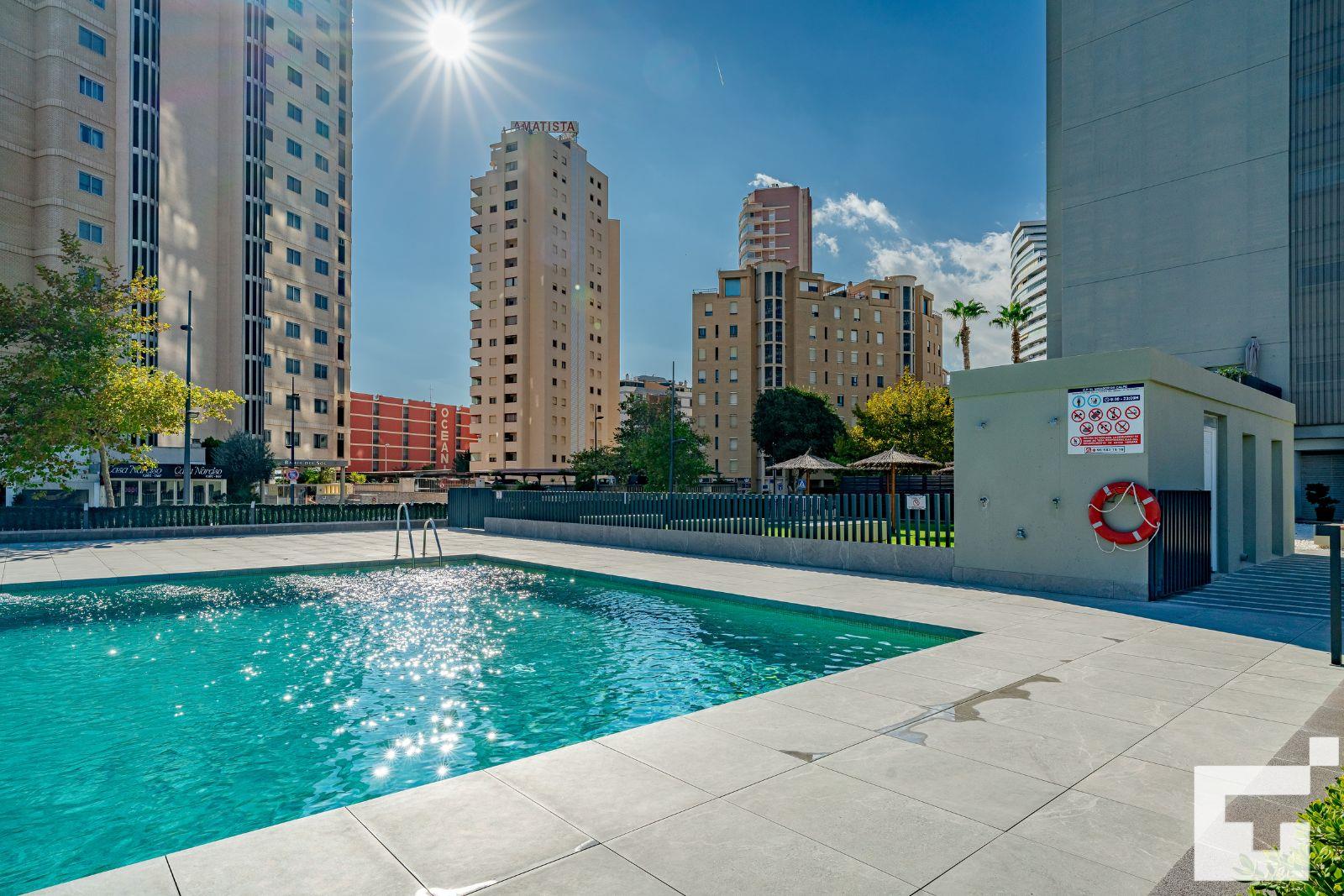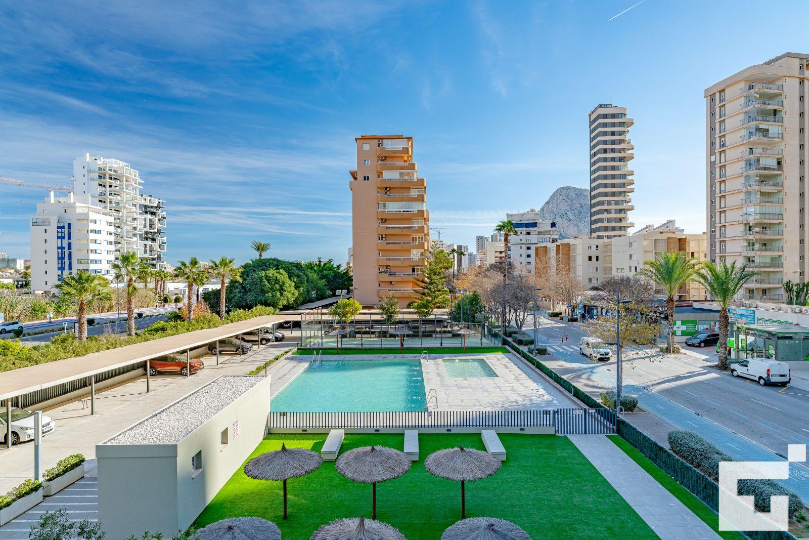 Bel appartement spacieux et confortable avec piscine commune à Calpe, Costa Blanca, Espagne, pouvant accueillir 5 personnes. L'appartement est situé dans un quartier résidentiel proche de la plage, à proximité de restaurants, bars, boutiques et supermarchés, et se trouve à 25 m de la plage de l'Arenal.