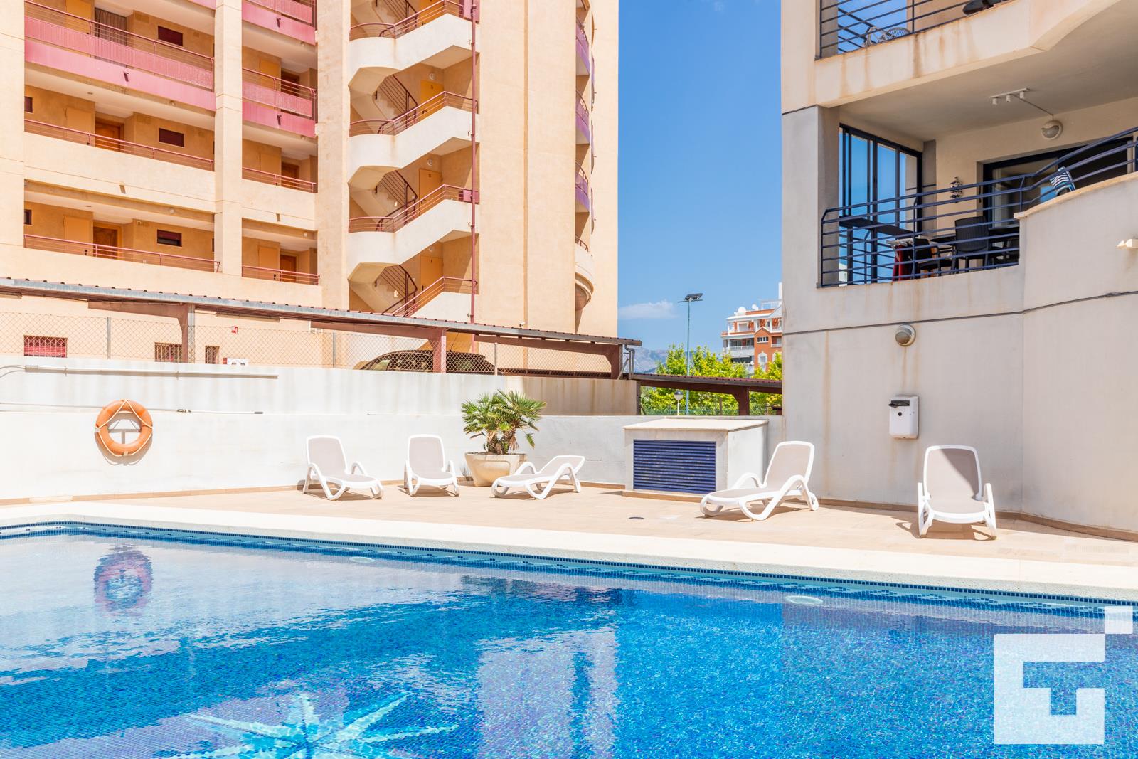 Bel appartement confortable à Calpe, Costa Blanca, Espagne, avec piscine commune pour 6 personnes. L'appartement est situé dans un quartier résidentiel proche de la plage, à proximité de restaurants, bars et supermarchés, et à 200 m de la plage de Levante.
