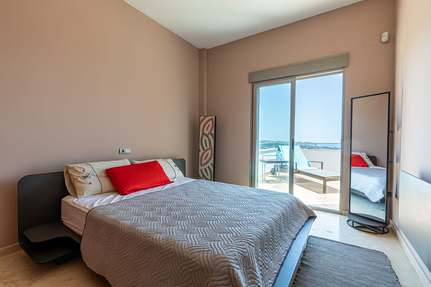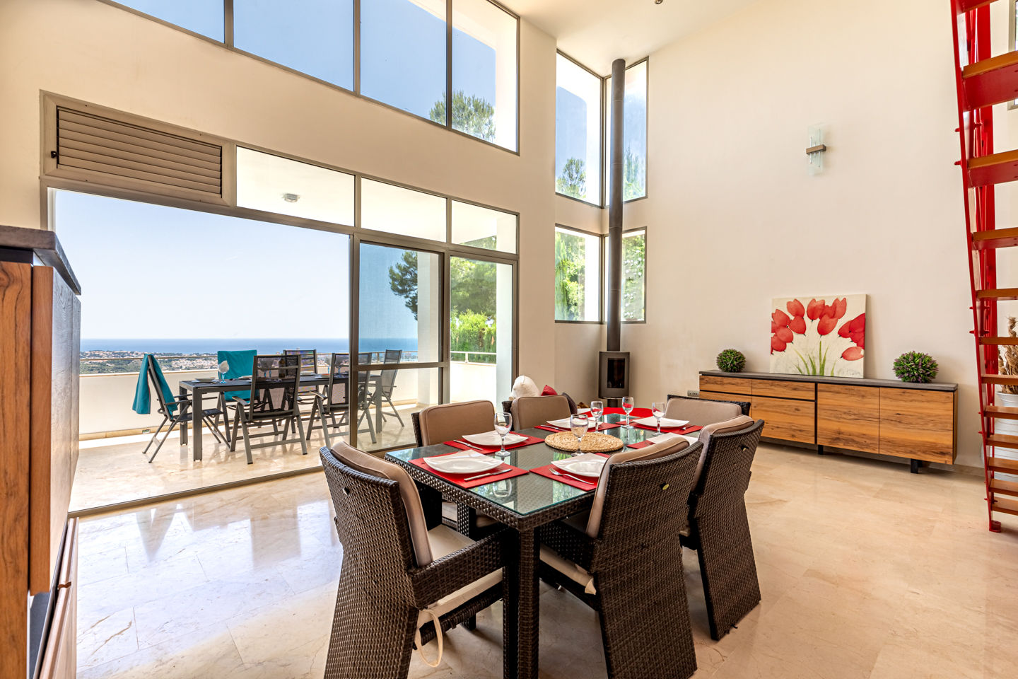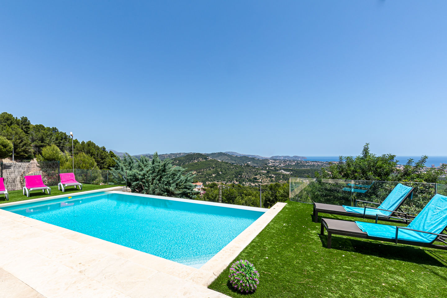 La villa a 4 chambres à coucher, 3 salles de bain et 1 toilette pour les invités, réparties sur 3 étages. Le logement offre de l'intimité, un beau jardin avec pelouse, une piscine merveilleuse et une vue merveilleuse sur mer et sur la vallée. Le comfort et le voisinage d'activités sportives rendent cette villa un logement idéal pour passer les vacances en Espagne avec votre famille ou vos amis.