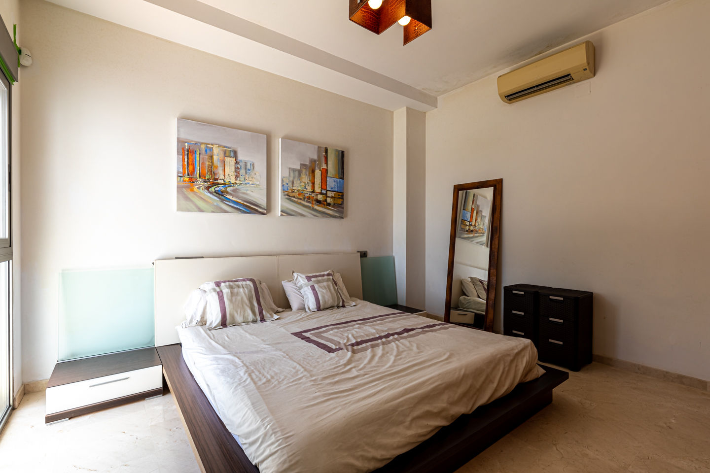 • chambre à coucher climatisée avec lit double