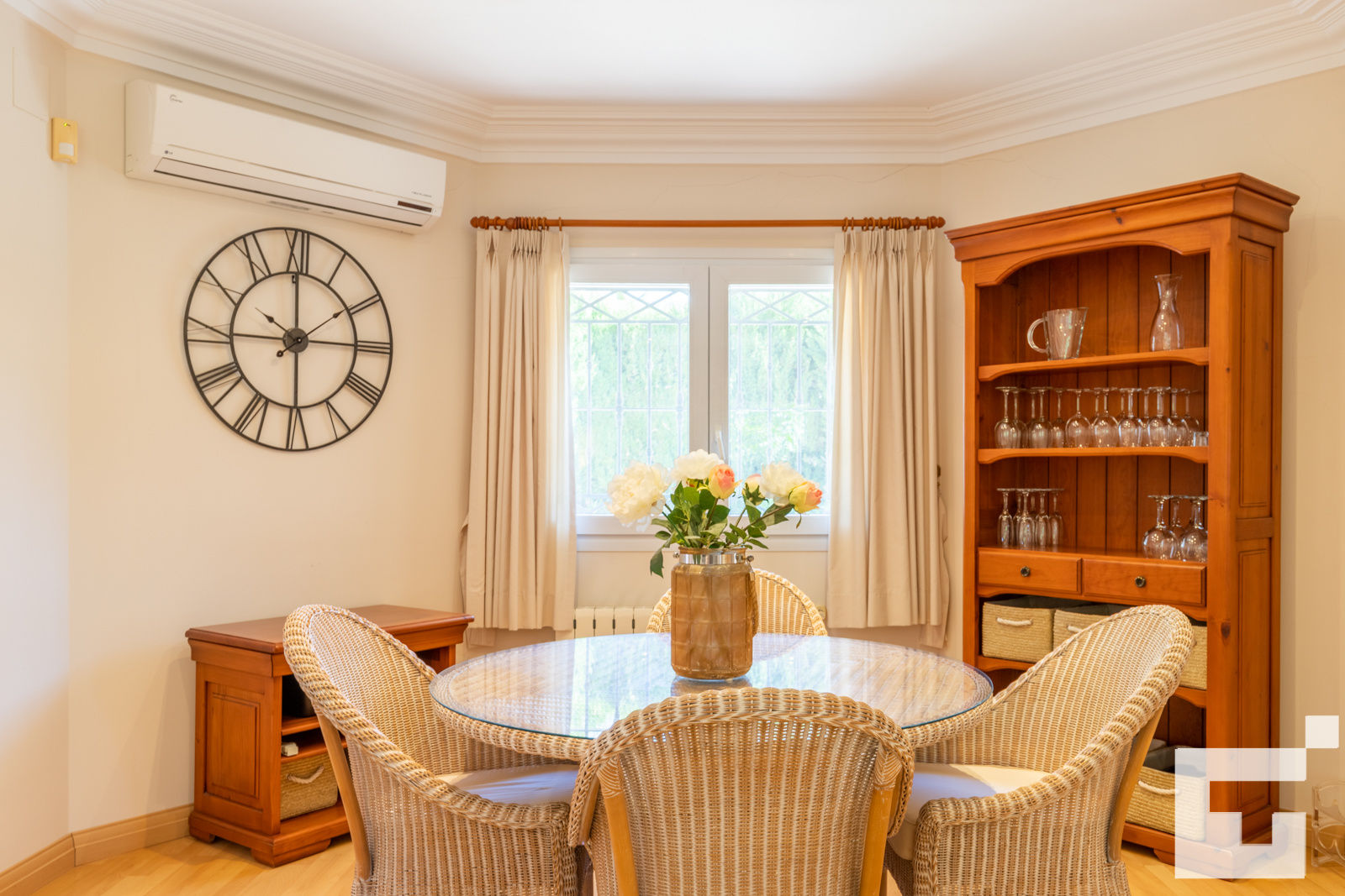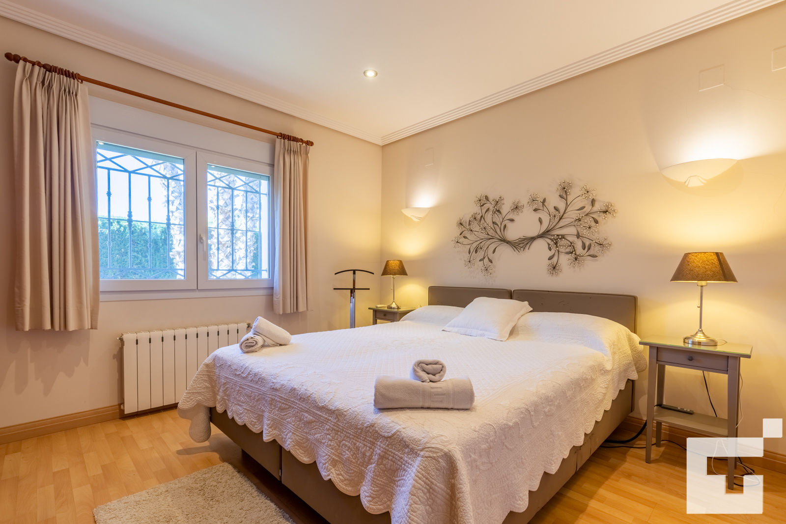 La maison dispose de 3 chambres et 2 salles de bains. L'hébergement offre beaucoup d'intimité, un merveilleux jardin avec pelouse et arbres, une piscine agréable ainsi qu'une vue sur la vallée et les montagnes. Son confort et sa proximité avec la plage, les zones commerciales et les lieux de divertissement en font une villa idéale pour passer vos vacances en Espagne en famille ou entre amis.