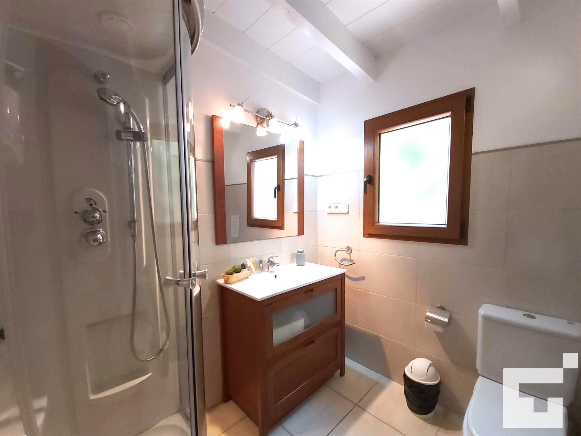 • salle de bains attenante avec lavabo simple, douche et toilettes