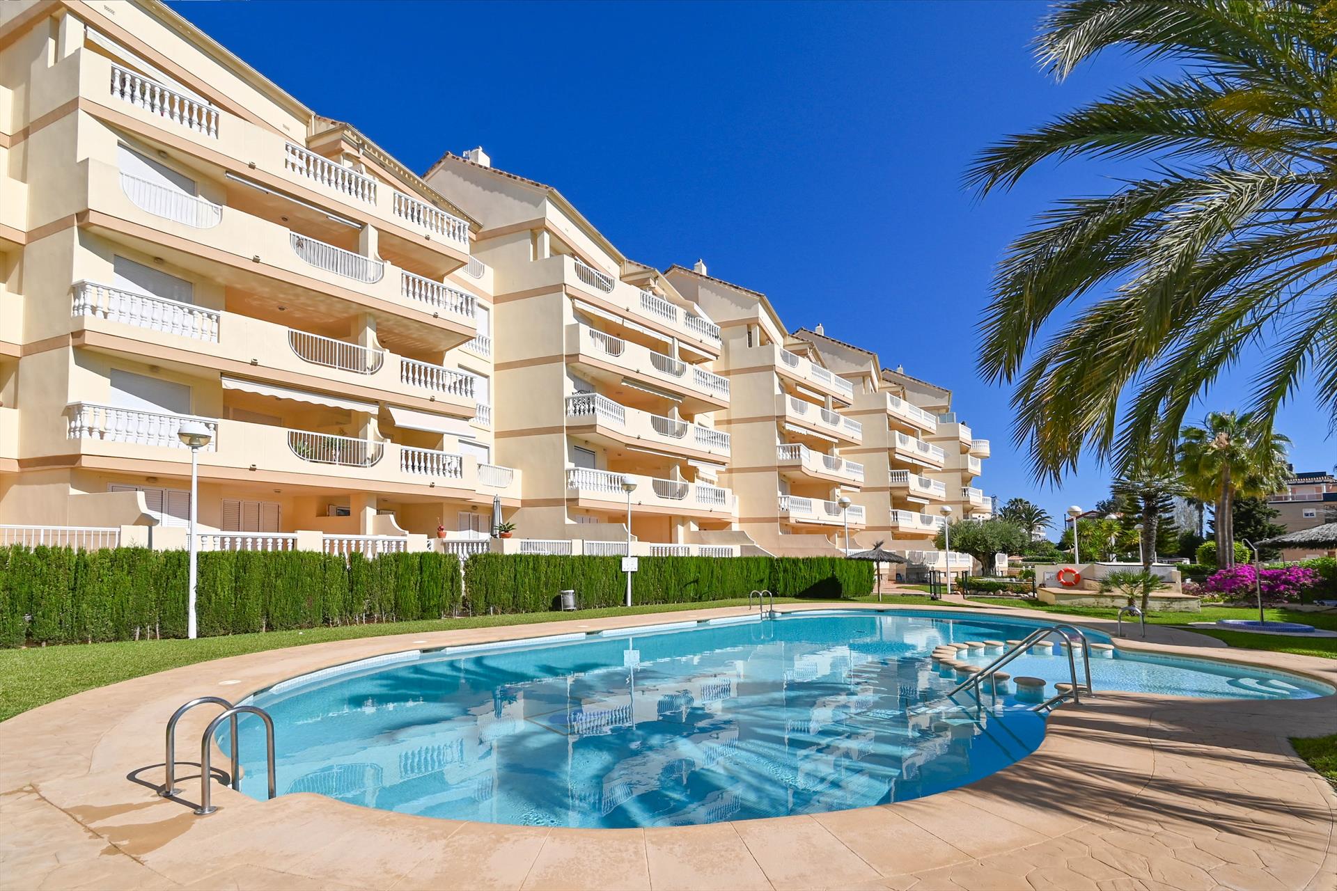 Magnifique et accueillant penthouse avec piscine commune à Denia, Costa Blanca, Espagne, pour 6 personnes. La maison est située dans un quartier résidentiel proche de la plage, à proximité de restaurants et bars, à 200 mètres de la plage de Playa de Les Marines et à 200 mètres de la mer Méditerranée.