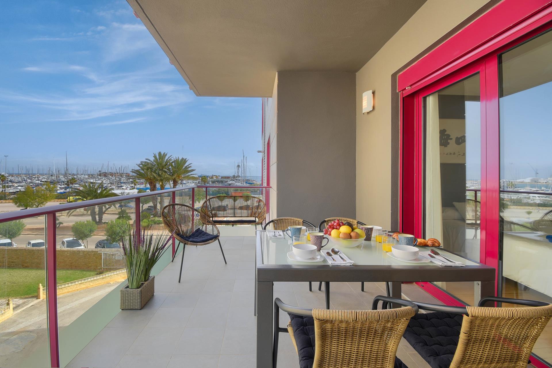 L'appartement a 2 chambres à coucher, 2 salles de bain et 1 toilette pour les invités. Le logement offre de l'intimité, un jardin communal avec pelouse et d´arbres, une vue merveilleuse sur le port et une belle vue sur mer. Le comfort et le voisinage de la plage, d'endroits pour faire du shopping, d'activités sportives, de lieux de divertissement, d'endroits pour sortir, d'attractions et de culture rendent cet appartement un logement idéal pour passer les vacances en Espagne avec votre famille ou vos amis.