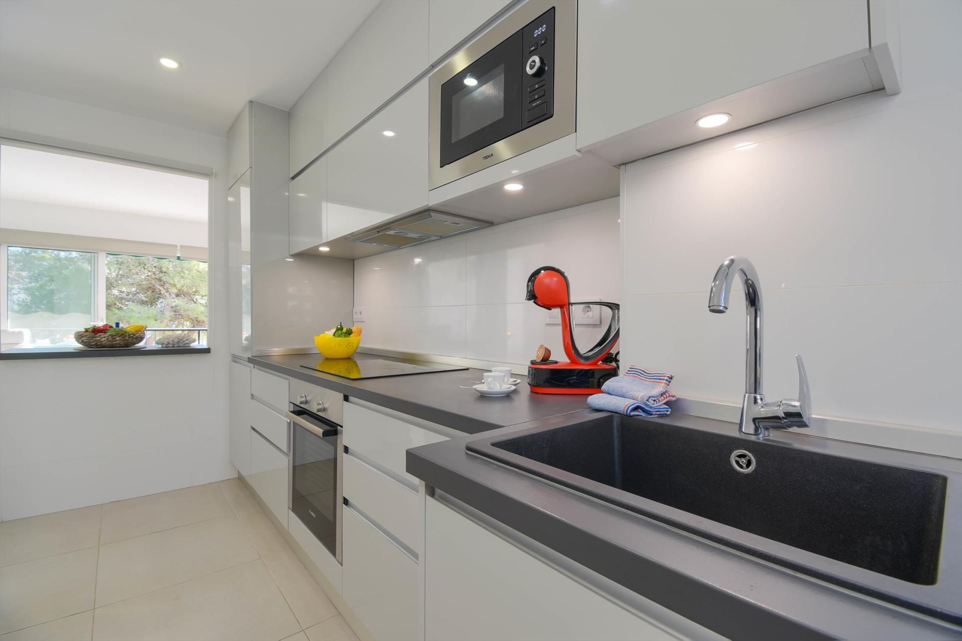 • cuisine équipée de plaques de cuisson électriques, four électrique, micro-ondes, réfrigérateur-congélateur, machine à café, bouilloire électrique, mixeur, grille-pain et presse-agrumes