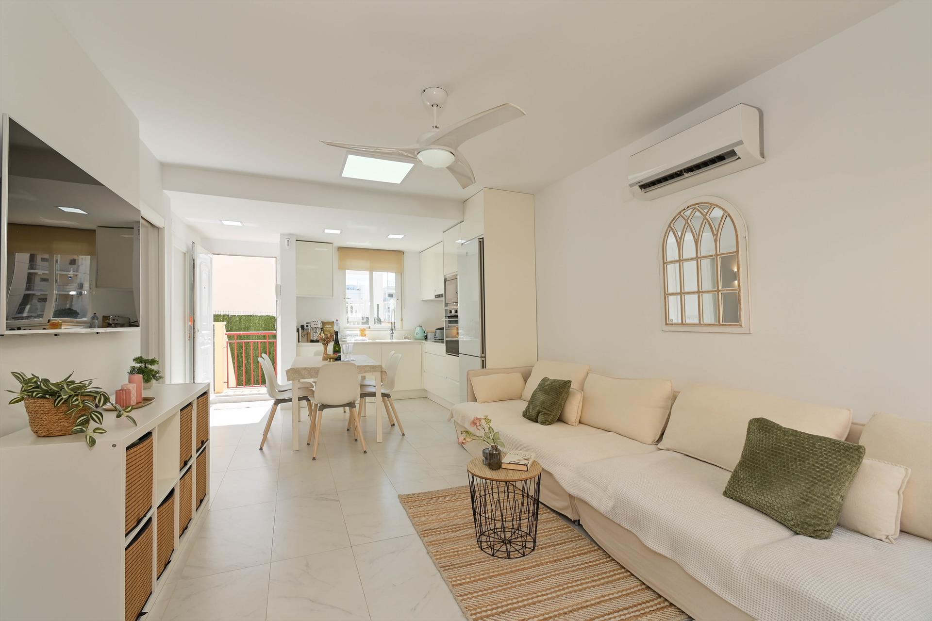 • Salon/salle à manger avec climatisation, télévision et ventilateur de plafond