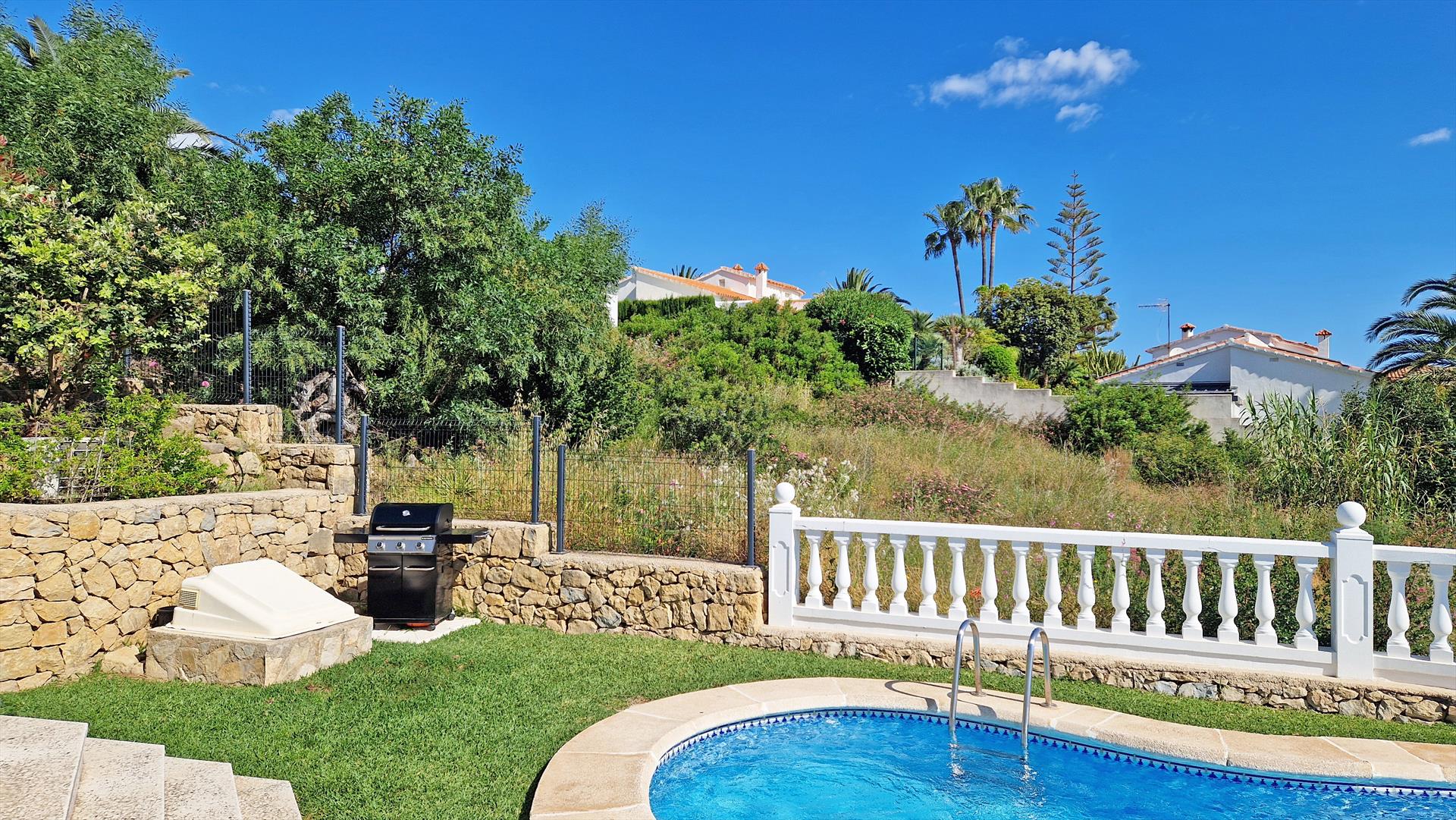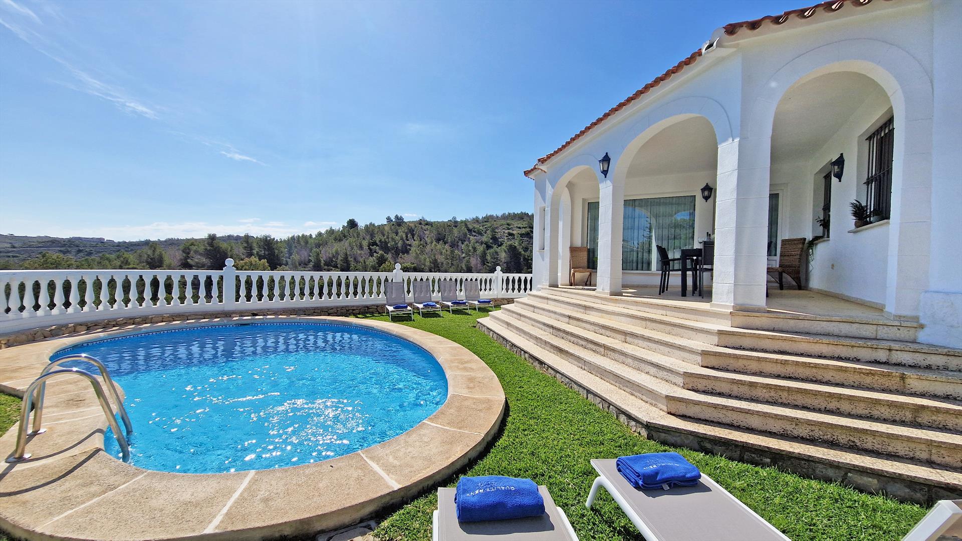 Grande et confortable villa avec piscine privée à Denia, Costa Blanca, Espagne, pour 6 personnes. La maison est située dans un quartier résidentiel et montagneux, à 3 km de la plage.