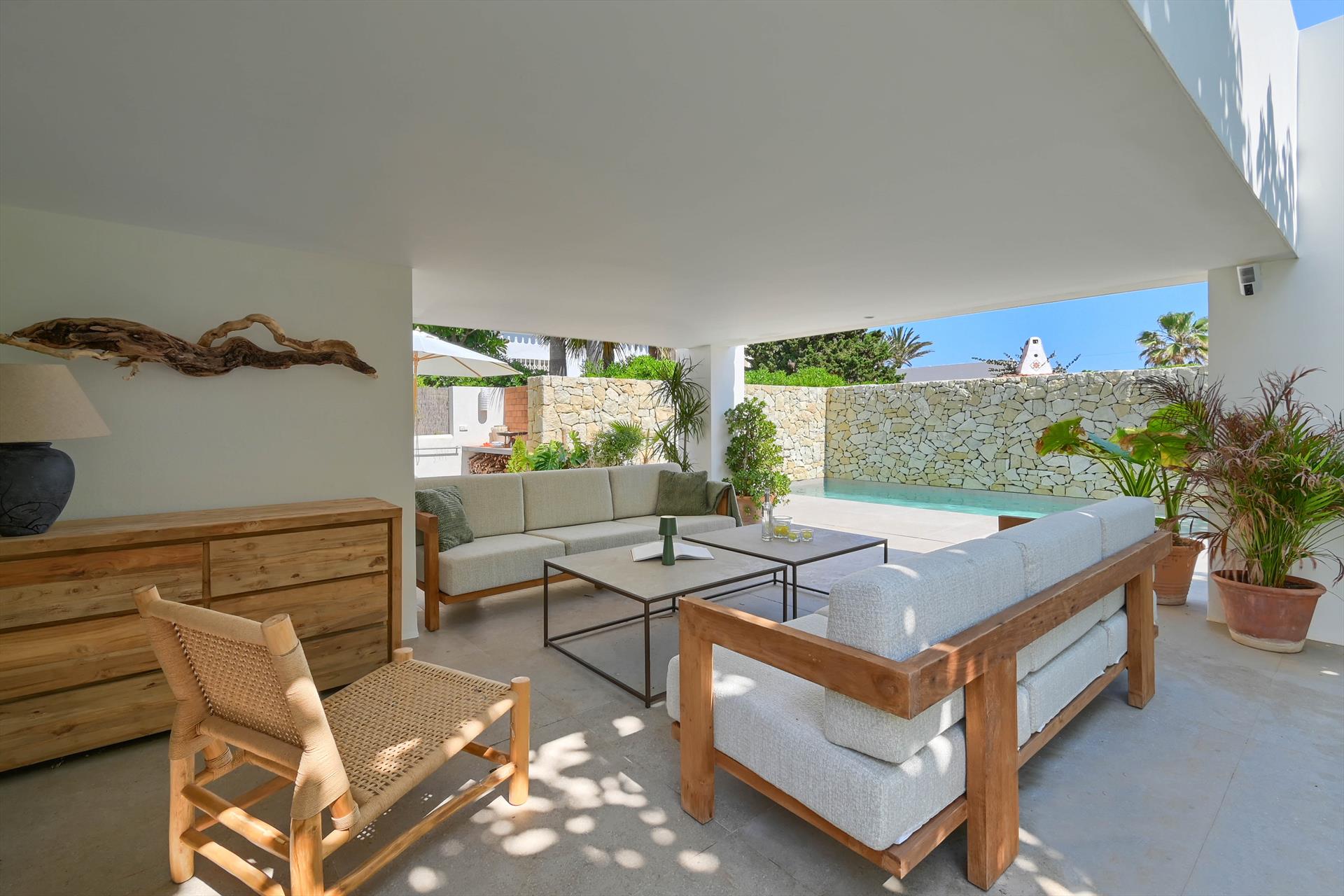 Villa moderne et luxueuse avec piscine privée à Dénia, Costa Blanca, Espagne pour 10 adultes + 4 enfants. La villa est située à proximité des restaurants et bars, à 25 m de la plage des Marines et à 25 m de la mer Méditerranée.