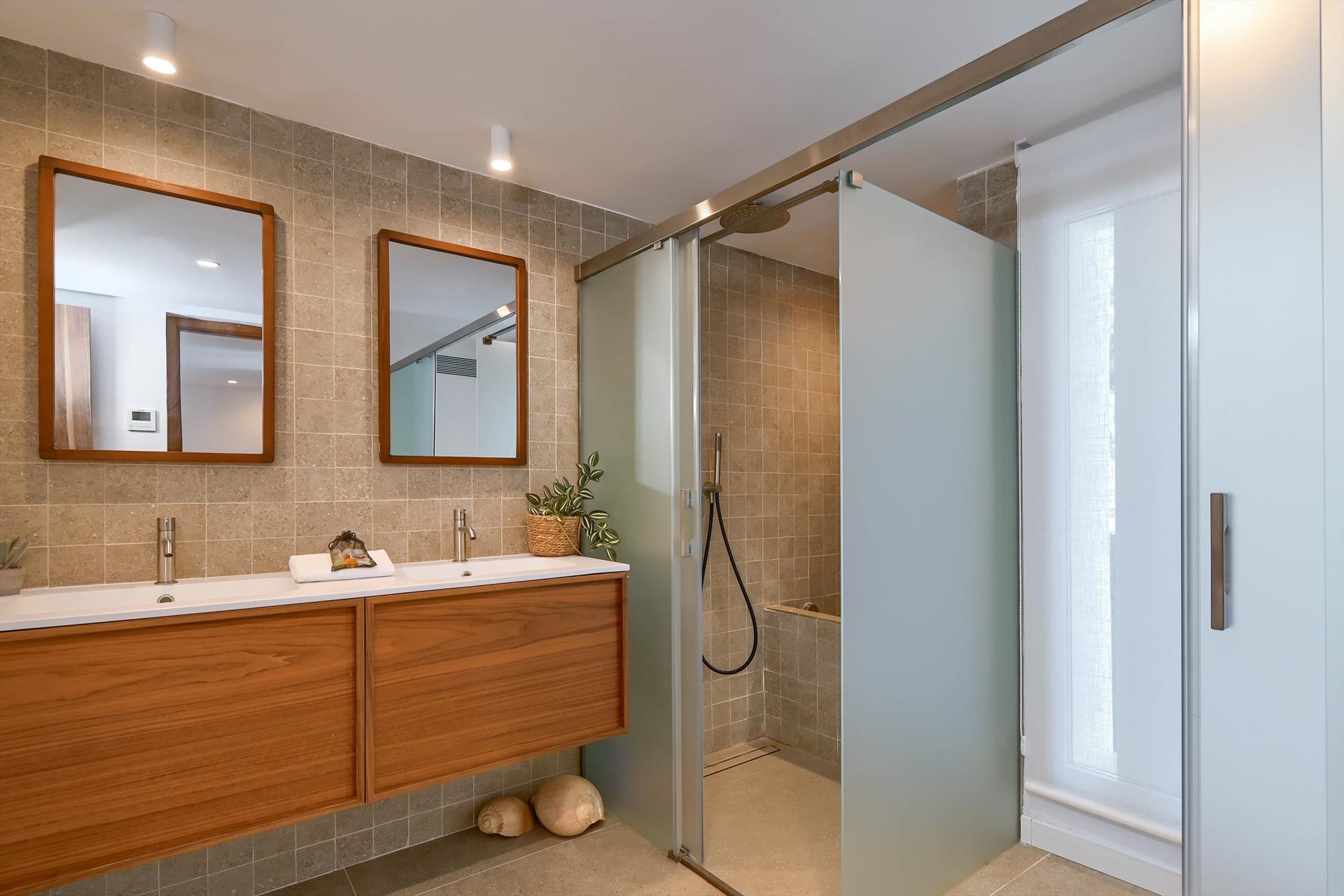 • 2 salles de bains en suite, chacune avec double vasque, douche et toilettes