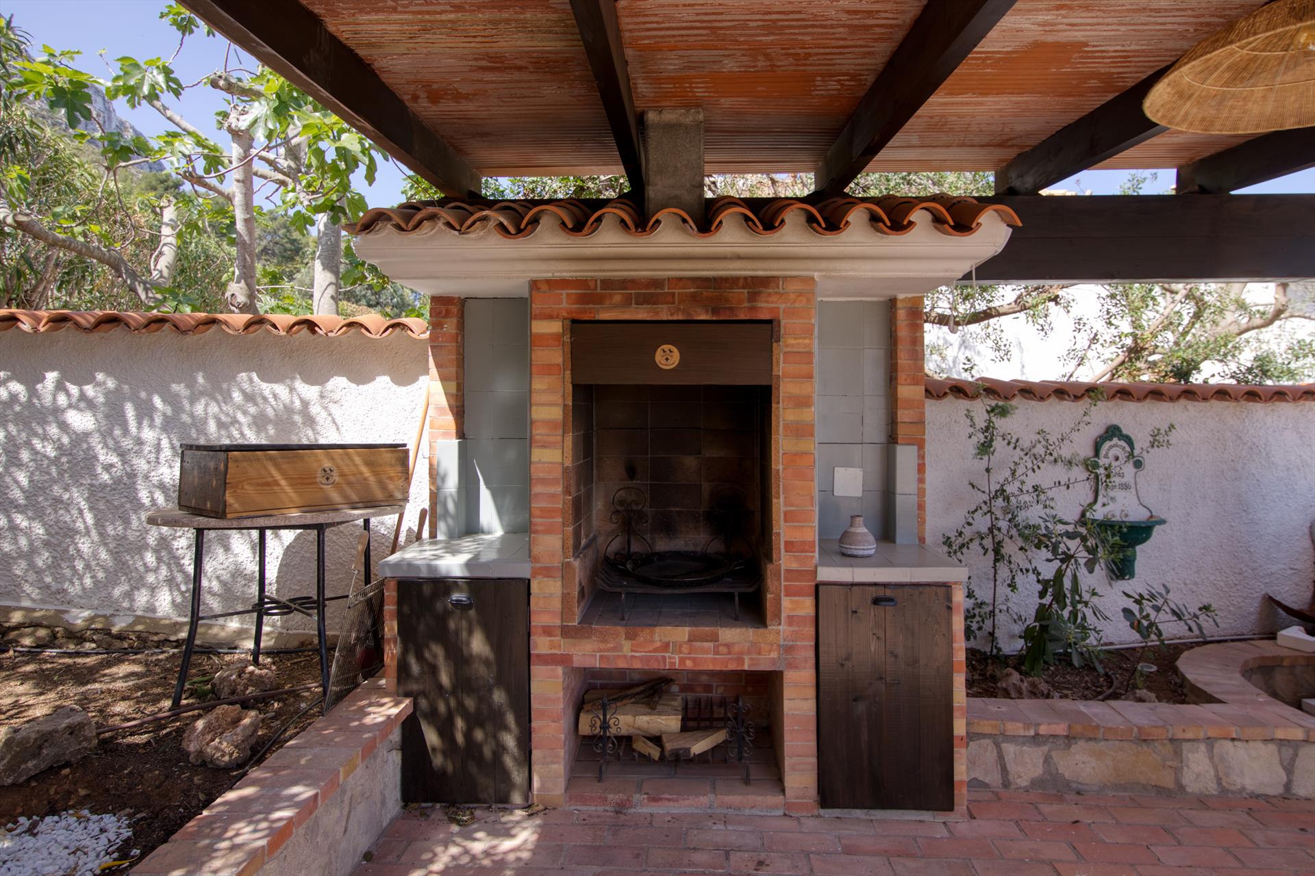 Intérieur : Réfrigérateur, plaque de cuisson et four ou grill électrique, cafetière, grille-pain, bouilloire, fer et table à repasser, mixeur.