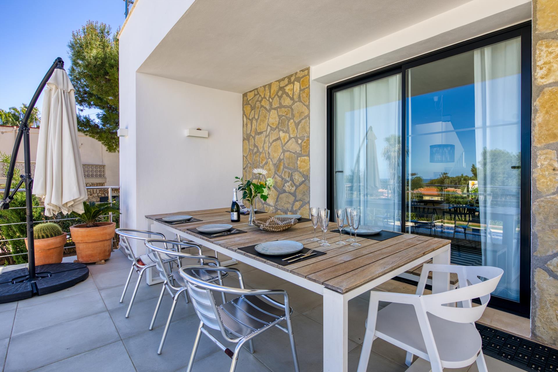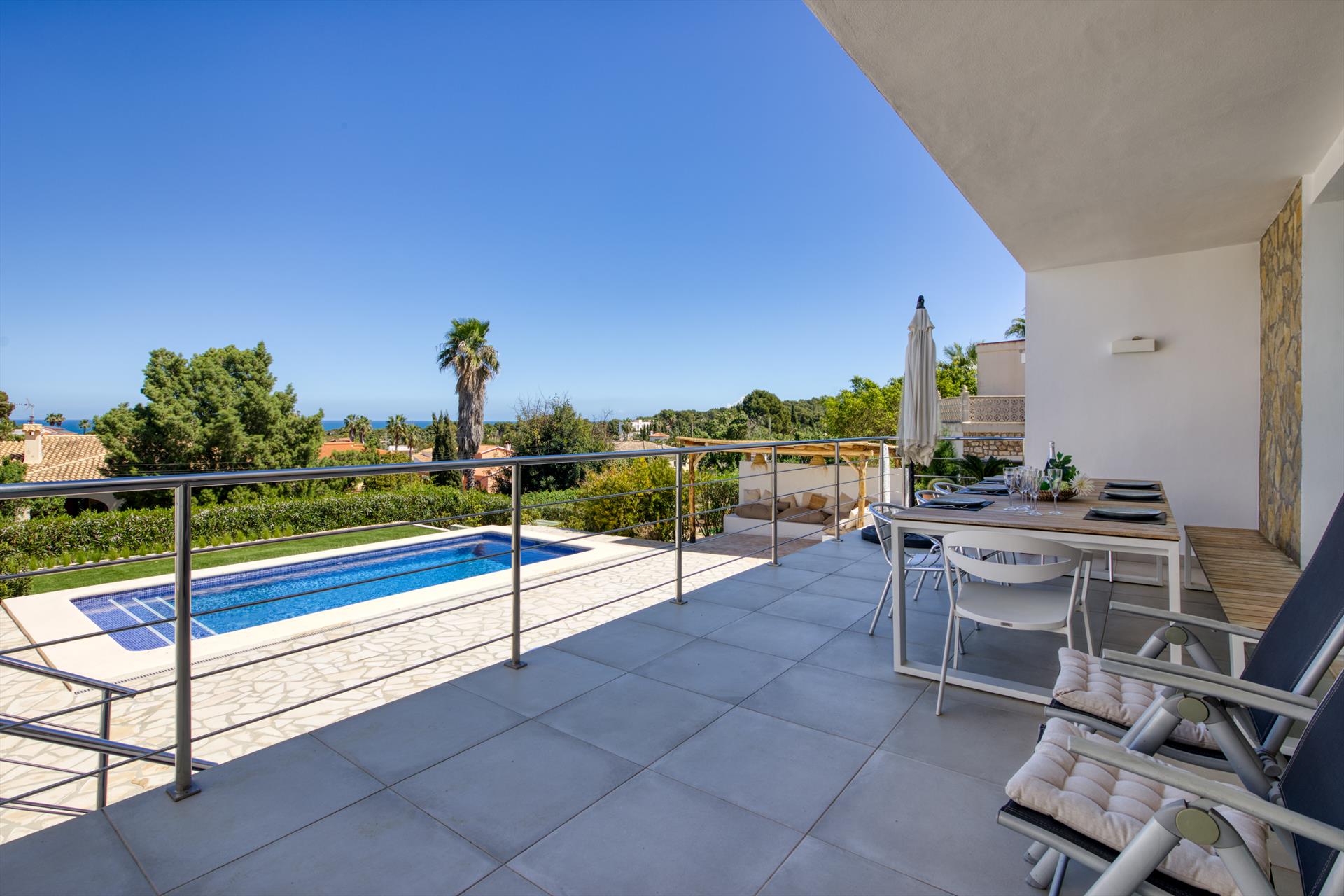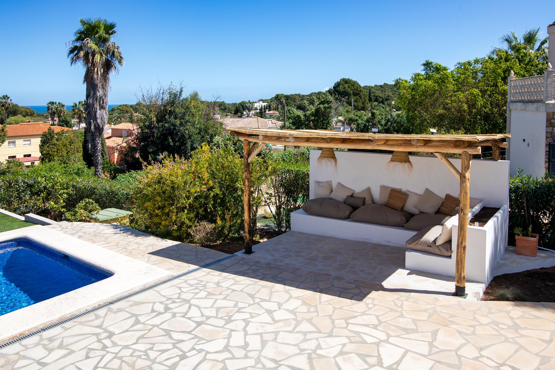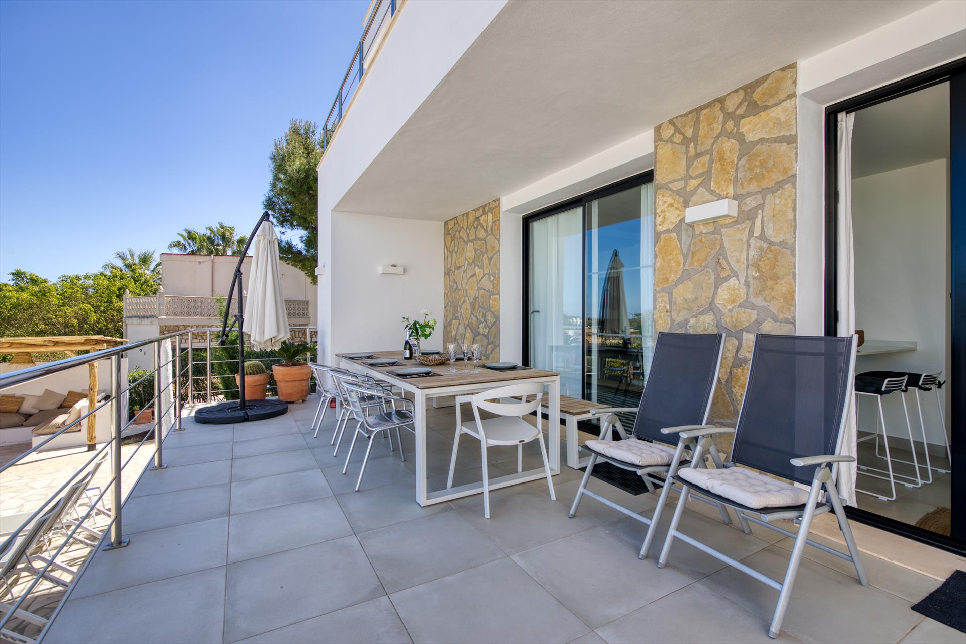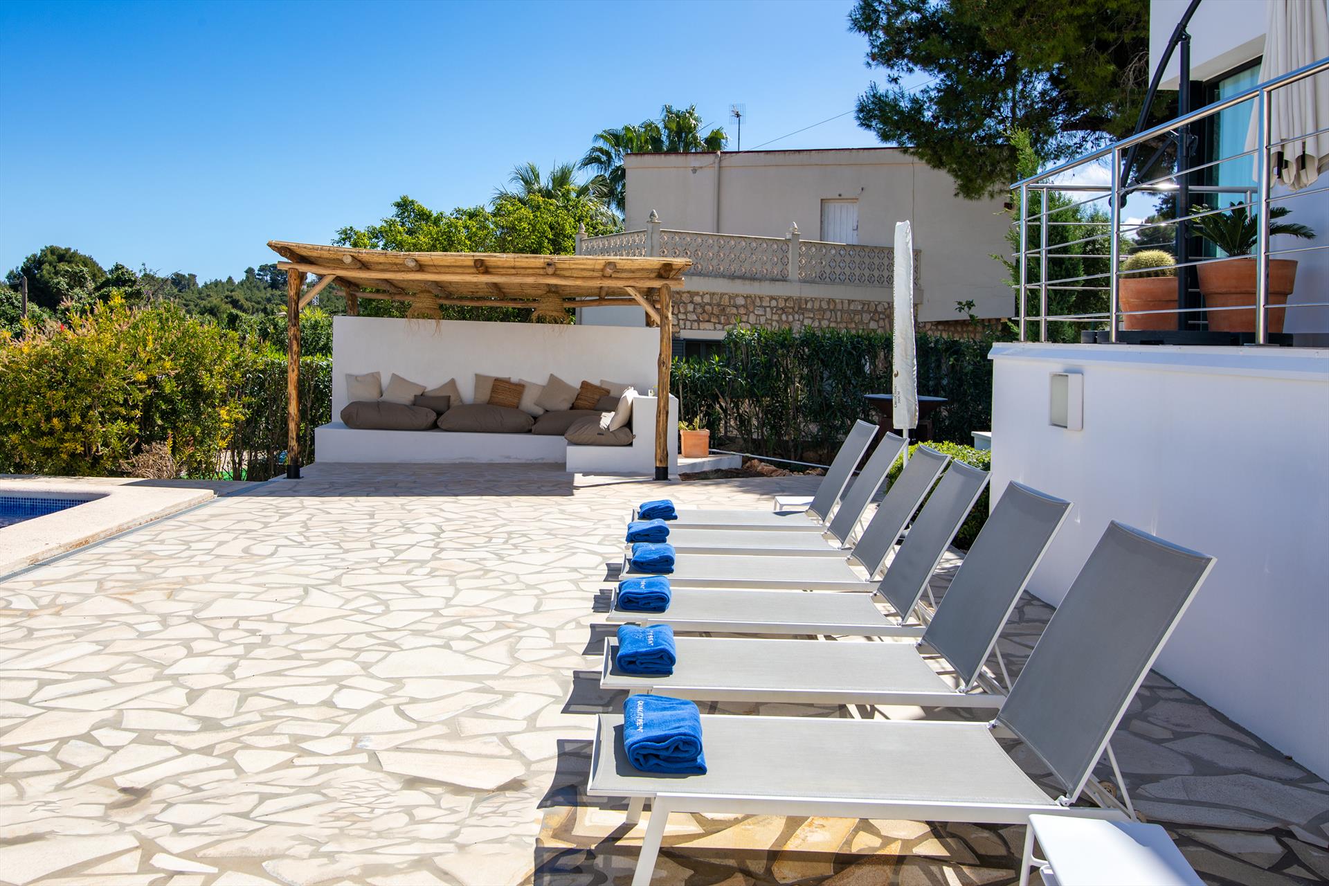 Extérieur : Salon de jardin et transats (pas nécessairement disponibles dans les appartements et maisons de ville)