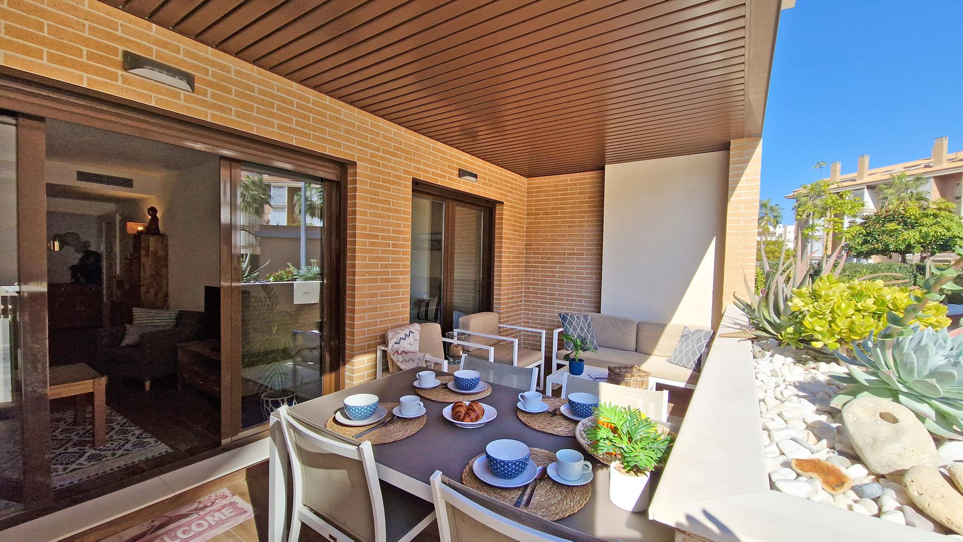 Extérieur : Salon de jardin et transats (pas nécessairement disponibles dans les appartements et maisons de ville)