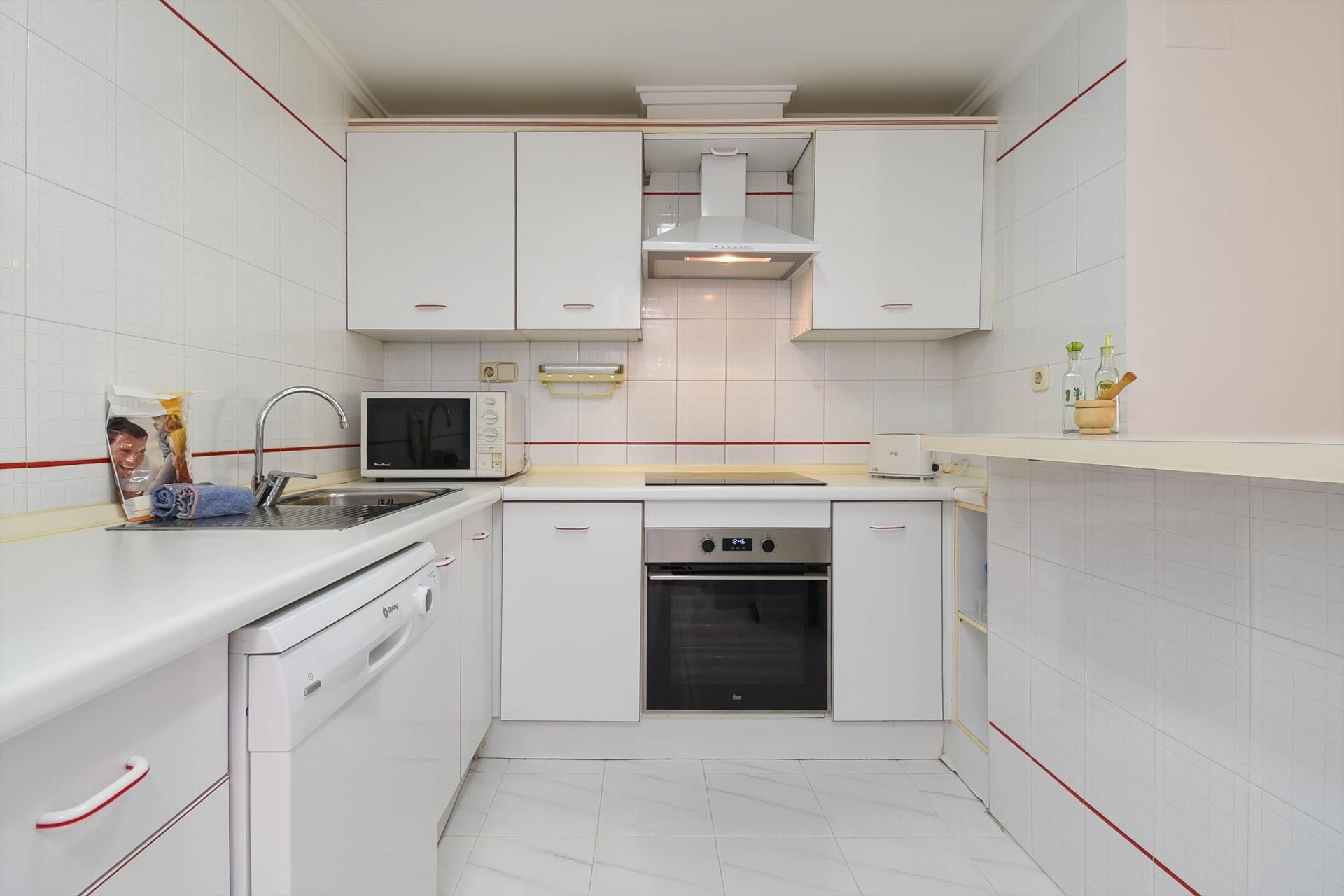Appartement classique à Javea, Costa Blanca, Espagne avec piscine communale pour 4 personnes. L'appartement est situé dans une région balnéaire et résidentielle, près de restaurants et bars, de magasins et de supermarchés, à 200 m de la plage de La Grava, Puerto, Javea et à 0,2 km de Mediterraneo, Javea.