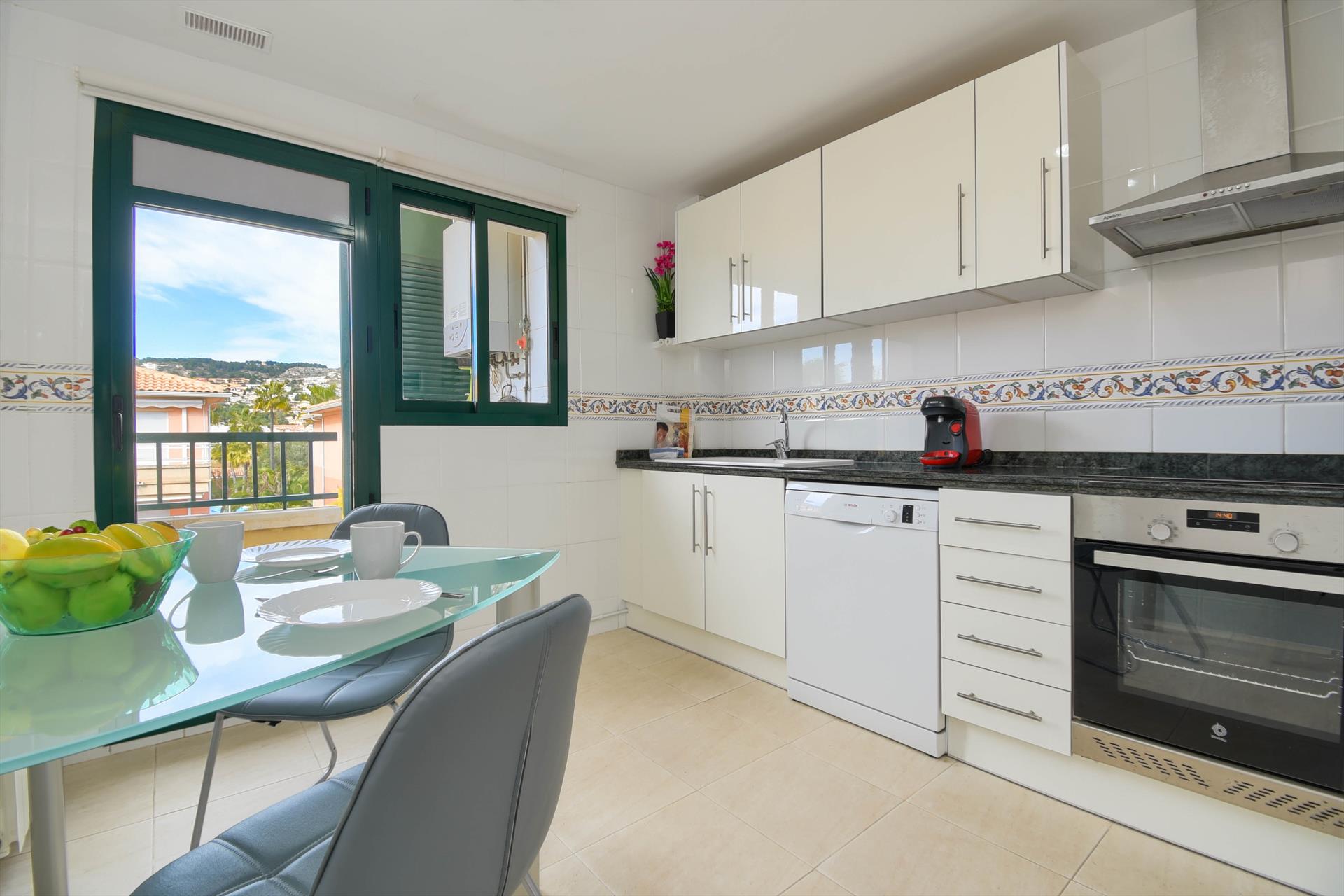 Bel appartement confortable à Javea, Costa Blanca, Espagne avec piscine commune pour 4 personnes. L'appartement est situé dans une zone résidentielle en bord de plage à 2 km de La Grava, la plage de Javea. L'appartement dispose de 2 chambres et 3 salles de bains, réparties sur 2 niveaux. L'hébergement offre de l'intimité, un beau jardin gazonné avec des arbres, un jardin commun gazonné avec des arbres et une vue sur la vallée, les montagnes, la ville, la piscine et le jardin. Son confort et la proximité de la plage, des commerces, des activités sportives, des installations de divertissement, des lieux de sortie, des sites à visiter et de la culture en font un excellent appartement pour passer vos vacances en Espagne en famille ou entre amis. **Intérieur de l'appartement:** - Appartement sur 2 niveaux - Salon/salle à manger climatisé avec télévision et ventilateur de plafond - 2 balcons, dont 1 couvert - 2 chambres et 3 salles de bains - Antenne satellite (UK + Netflix) et télévision par câble (TDT) - Buanderie avec lave-linge **Cuisine:** - Cuisine équipée avec plaque de cuisson électrique, four électrique, micro-ondes, lave-vaisselle, réfrigérateur-congélateur, cafetière, bouilloire électrique, mixeur, grille-pain et presse-agrumes **Chambres et salles de bains:** - Chambre climatisée avec lit double, télévision et salle de bains privative - Chambre climatisée avec 2 lits simples, télévision et salle de bains privative - Salle de bains privative avec lavabo simple, baignoire/douche et toilettes - Salle de bains privative avec lavabo simple, douche et toilettes - Salle de bains avec lavabo simple, douche et toilettes **Extérieur de l'appartement:** - Terrain clos - Piscine commune en forme de lagune mesurant 15m x 8m et 2m de profondeur - Pataugeoire pour enfants - Beau jardin gazonné avec des arbres et mobilier de jardin avec des transats - Jardin commun gazonné avec des arbres - Aire de jeux - 3 terrasses, dont 2 couvertes - Douche extérieure - Espace salon extérieur et espace repas extérieur - Place de garage commune **Plus d'informations:** - Ville la plus proche: Javea (à moins de 2 kilomètres de l'appartement) - Rivage ou rive la plus proche: Mediterraneo, Javea (à moins de 2 kilomètres de l'appartement) - Plage la plus proche: La Grava, Javea (à moins de 2 kilomètres de l'appartement) - Port le plus proche: Aduanas del Mar (à moins de 2 kilomètres de l'appartement) - Parc le plus proche: Montgo, Javea (à moins de 2 kilomètres de l'appartement) - Aéroport le plus proche: Alicante (à moins de 100 kilomètres de l'appartement) - Deuxième aéroport le plus proche: Valence (> 100 kilomètres) - Transport en commun à proximité: bus à moins de 1000 mètres - Veuillez consulter pour savoir si les animaux de compagnie sont autorisés - L'immeuble où se trouve le logement est équipé d'un ascenseur - Le logement est très adapté aux familles avec enfants **Équipements privés et services inclus dans le prix de la location:** - Internet (fibre optique) - Fer et planche à repasser - Linge de lit et serviettes - Service d'urgence 24h/24 - Chauffage et climatisation **Équipements/services communs:** - Court de tennis - Jacuzzi extérieur **Équipements et services privés en supplément:** - Service de transfert aéroportuaire - Lit supplémentaire et lit bébé/enfant (sur demande) **Activités de loisirs et de divertissement pour vos vacances à Javea, Costa Blanca:** - Cinéma, théâtre, discothèque, bar et promenade (Paseo Maritimo) (à moins de 5 kilomètres de la maison) **Sites et culture à Javea, Costa Blanca:** - Bâtiment architectural (Mercat del Riurau) (à moins de 1000 mètres du logement) - Musée (Histórico de Javea, Javea), église (Virgen de Loreto, Puerto, Javea), ruine (Molinos de Viento, Javea), monument (Pueblo de Javea, Javea), lieu historique (Pueblo de Javea et Javea) (à moins de 5 kilomètres du logement) - Château (Portal de la Vila et Denia) (à moins de 25 kilomètres du logement) **Sports:** - Tennis, randonnée, VTT, cyclisme, escalade, canoë-kayak, pêche, plongée, snorkeling, surf et planche à voile (à moins de 5 kilomètres de l'appartement) - Golf (Golf Javea) et équitation (à moins de 10 kilomètres de l'appartement)