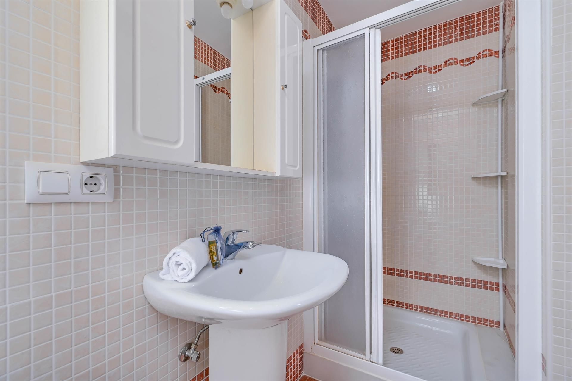 • Salle de bain avec lavabo simple, douche et toilette