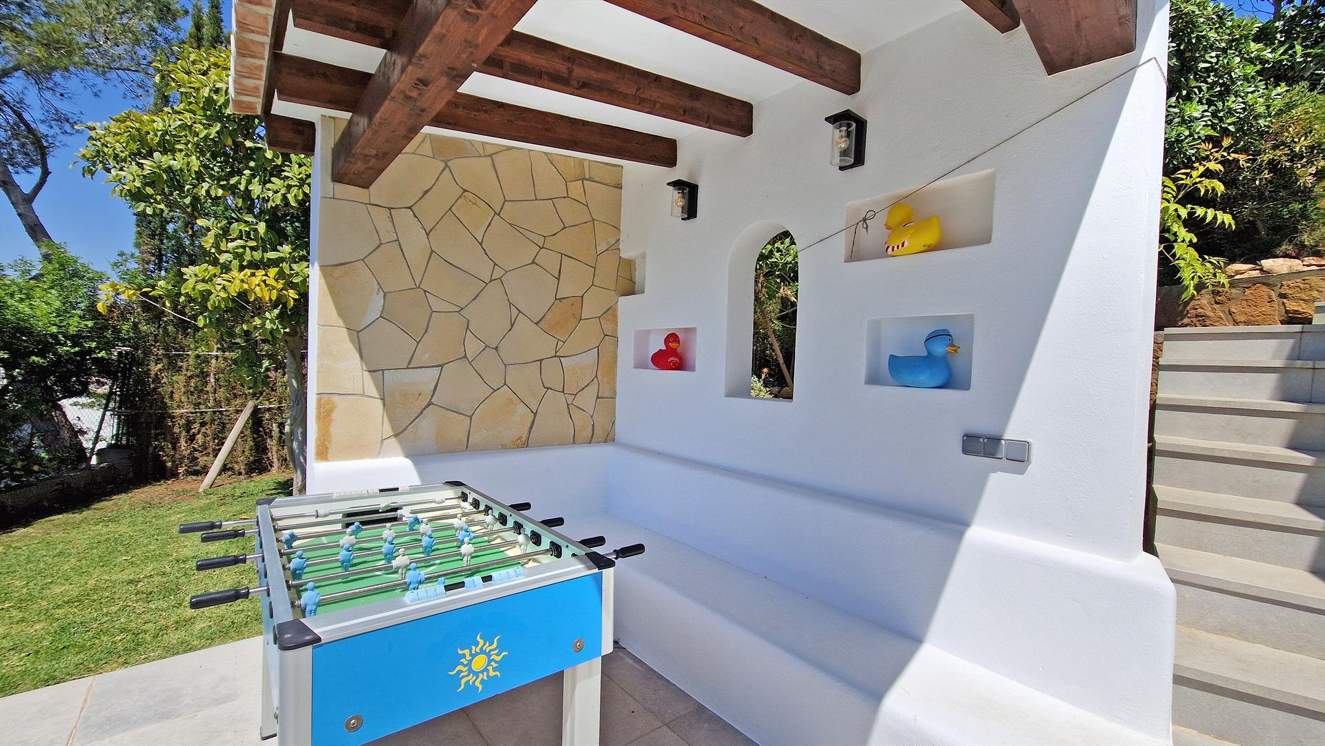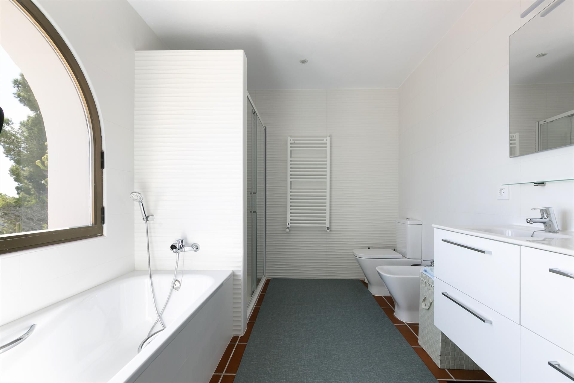 La villa comprend 4 chambres, 4 salles de bain et 1 toilette pour invités, répartis sur 2 niveaux. L'hébergement offre intimité, un jardin arboré, une belle piscine et de superbes vues sur la mer. Son confort et la proximité de la plage, des activités sportives et des lieux de sortie en font une villa idéale pour passer vos vacances en Espagne en famille ou entre amis.