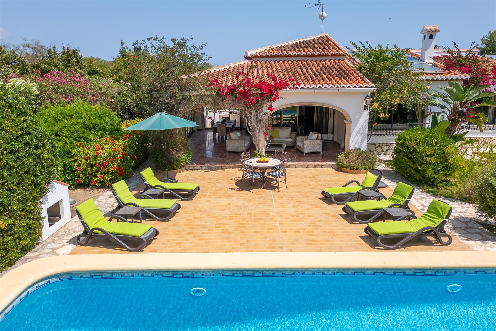 Extérieur : Salon de jardin et transats (pas nécessairement disponibles dans les appartements et maisons de ville)