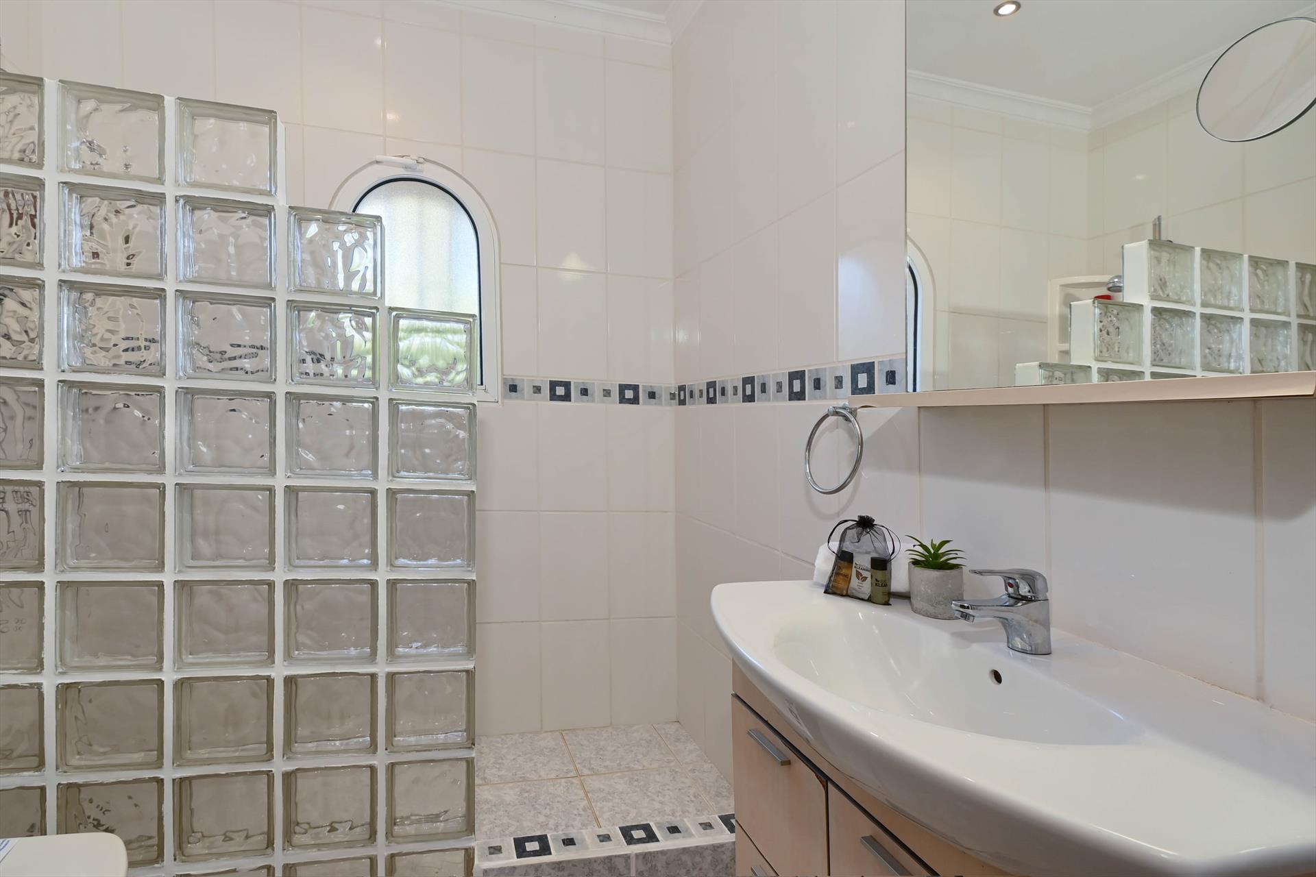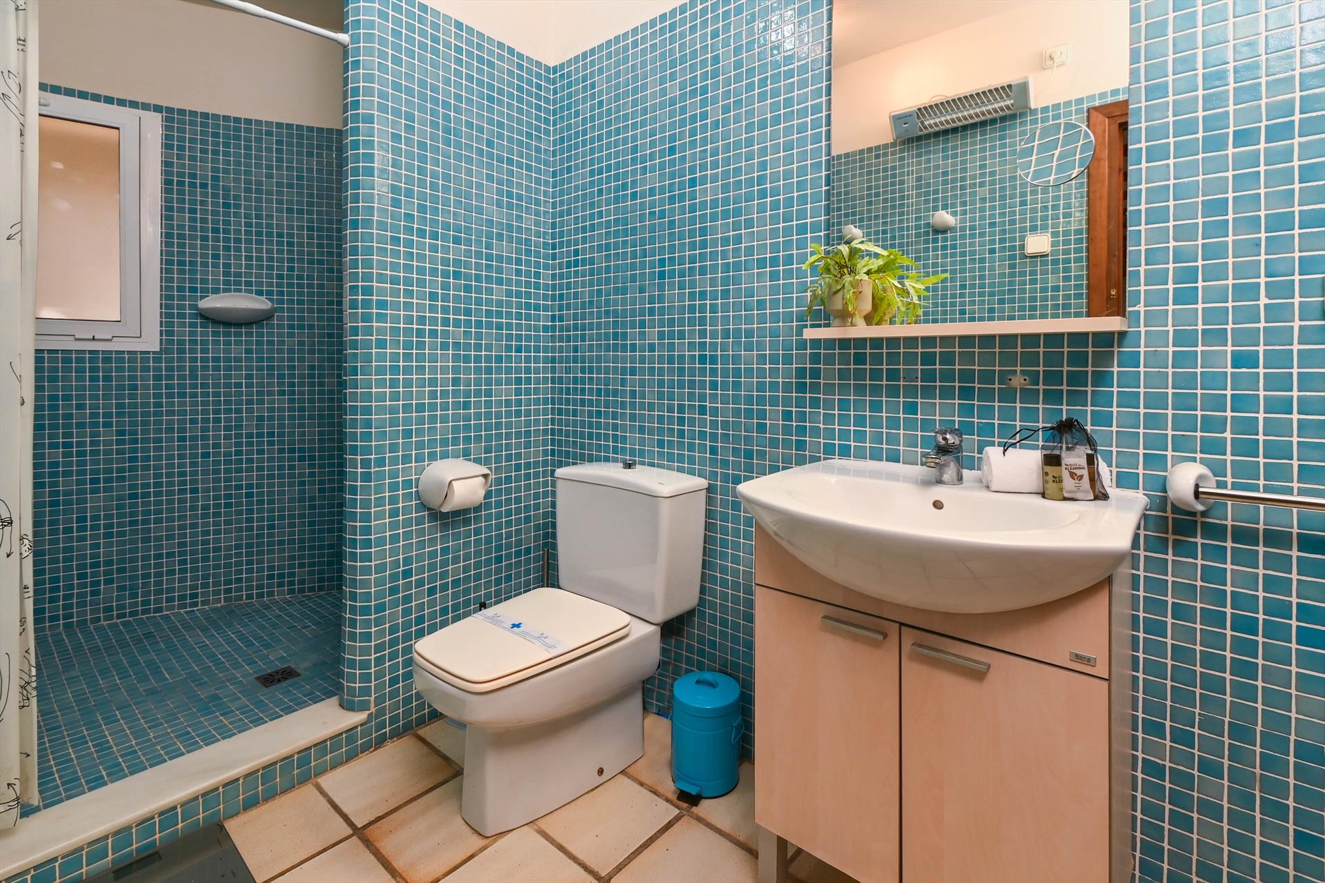 • Salle de bain attenante avec lavabo simple, douche et WC