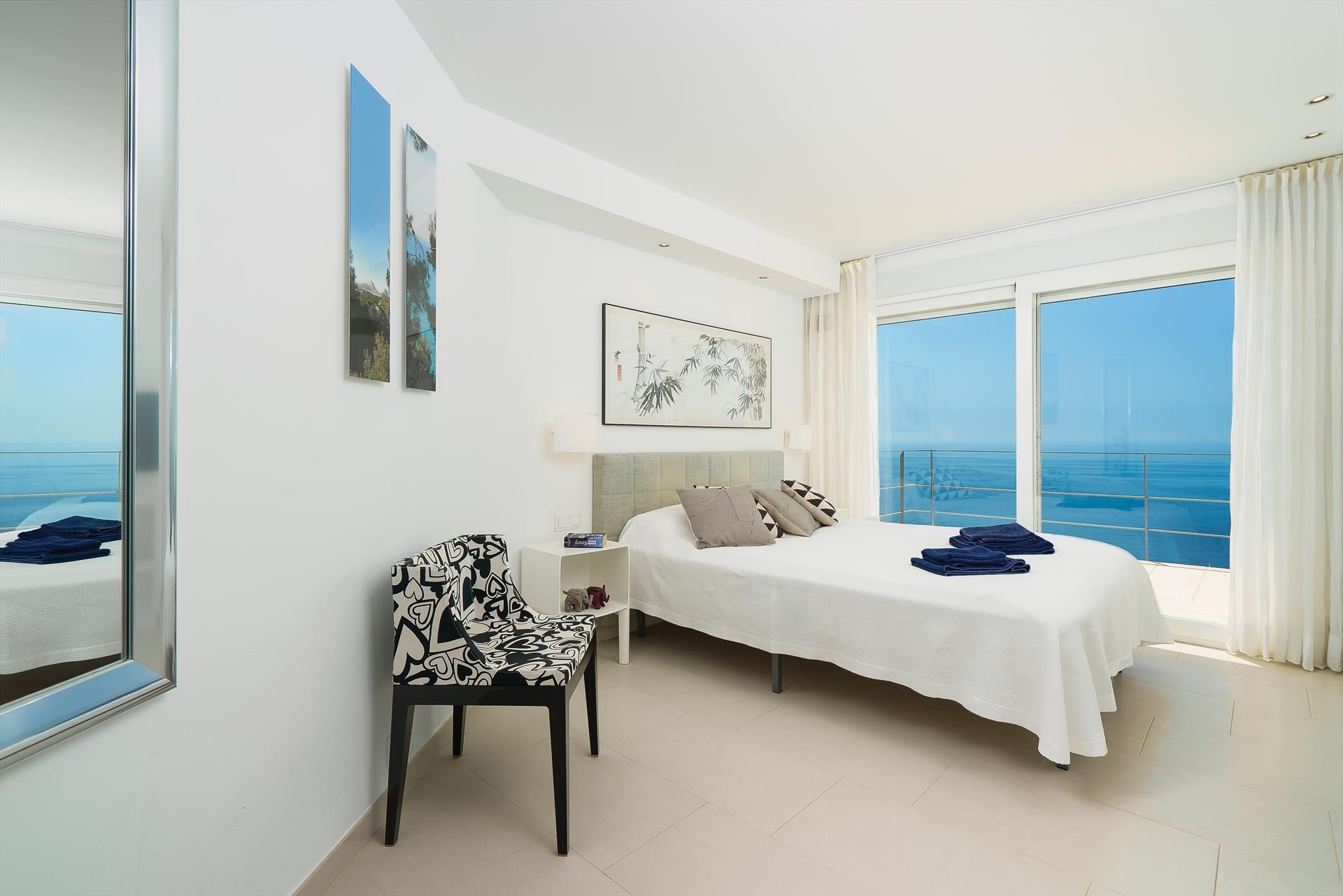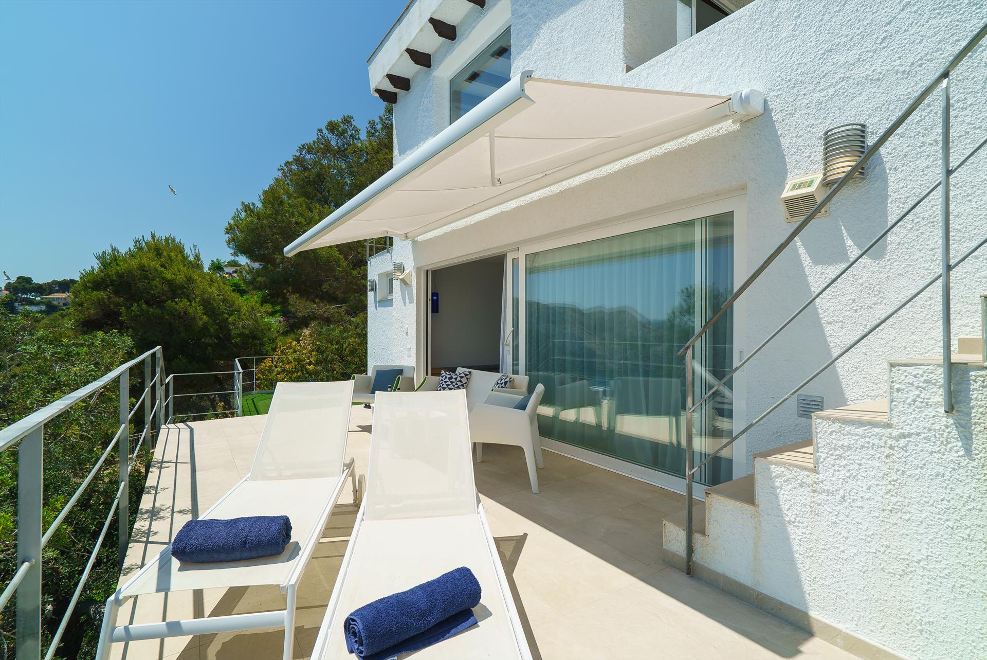 La villa de luxe dispose de 3 chambres, 3 salles de bains et 1 toilette d'invité, réparties sur 3 niveaux. L'hébergement offre beaucoup d'intimité, une belle piscine, de magnifiques vues sur la baie et la mer ainsi que de belles vues sur les montagnes. Son confort et la proximité de la plage font de cette villa de luxe un lieu idéal pour passer vos vacances en Espagne en famille ou entre amis.