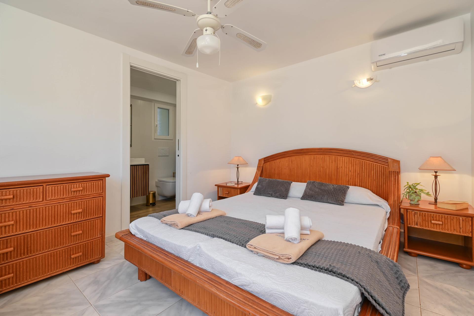 • Chambre avec lit double, ventilateur et salle de bains attenante