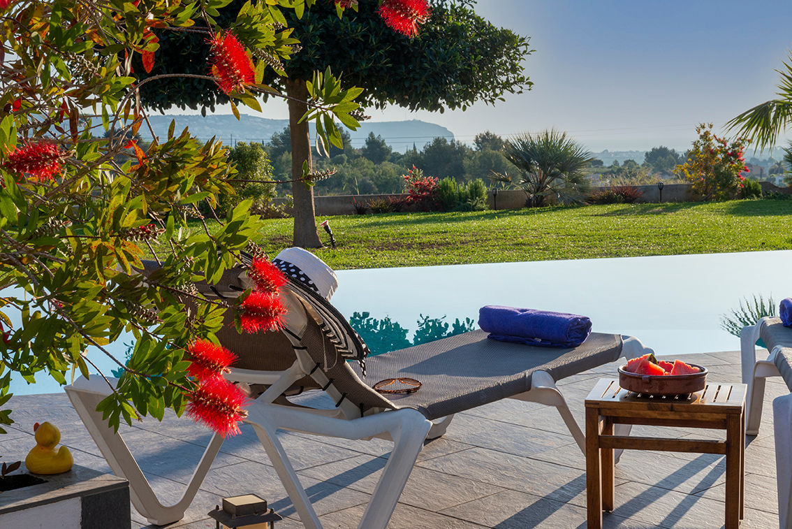 Villa moderne et intime à Javea, sur la Costa Blanca, Espagne avec piscine privée pour 6 personnes. La maison de vacances est située dans une région balnéaire, rurale et boisée.